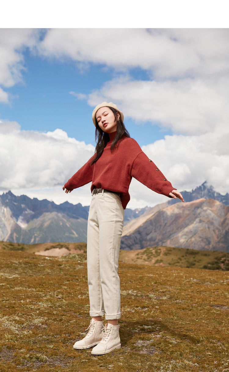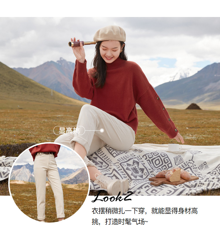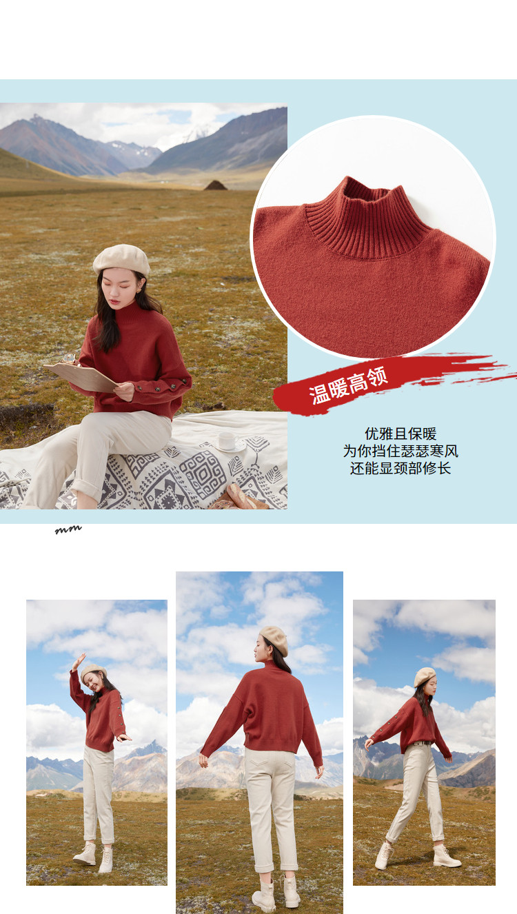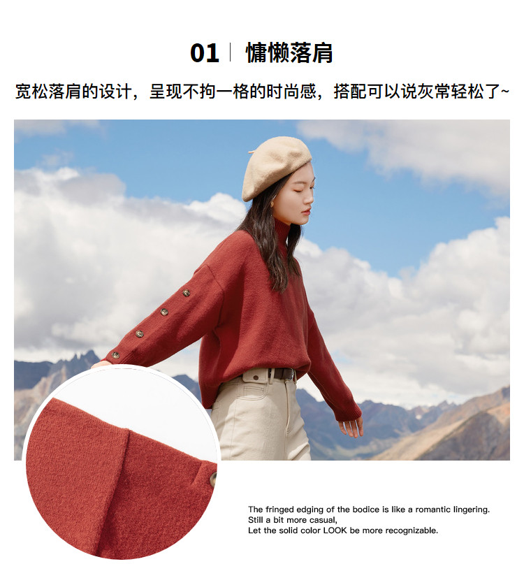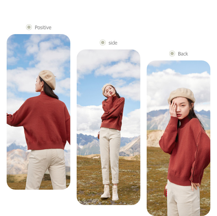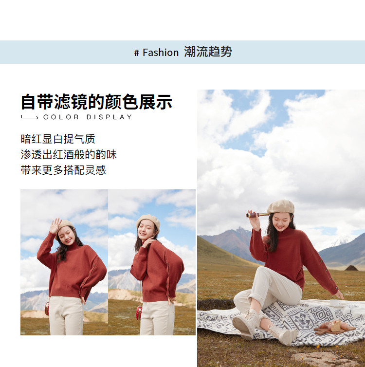 香影 Демисезонный красный трикотажный свитер, 2020, в корейском стиле, оверсайз, в западном стиле
