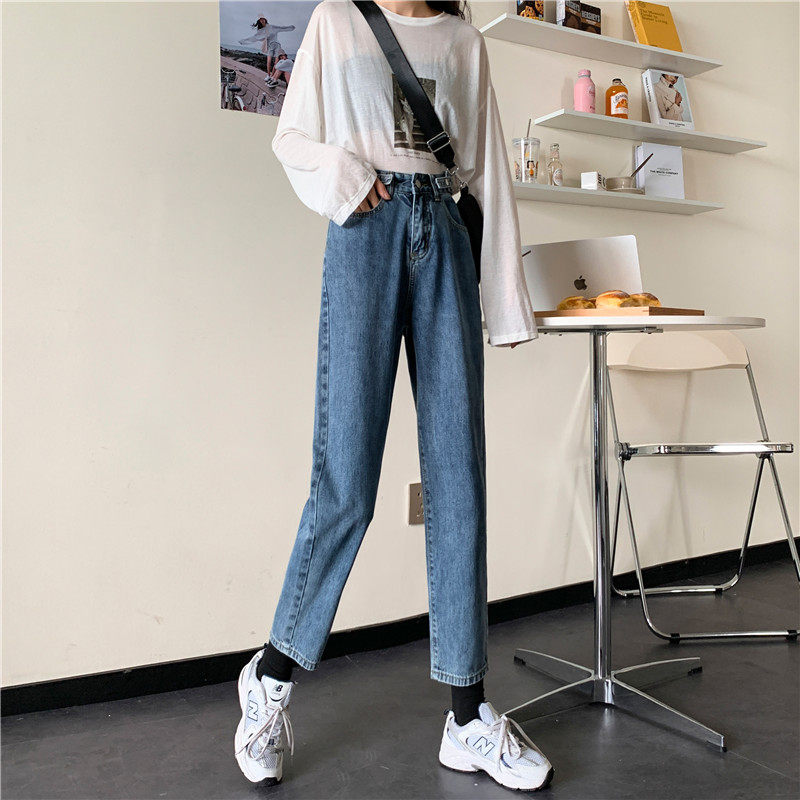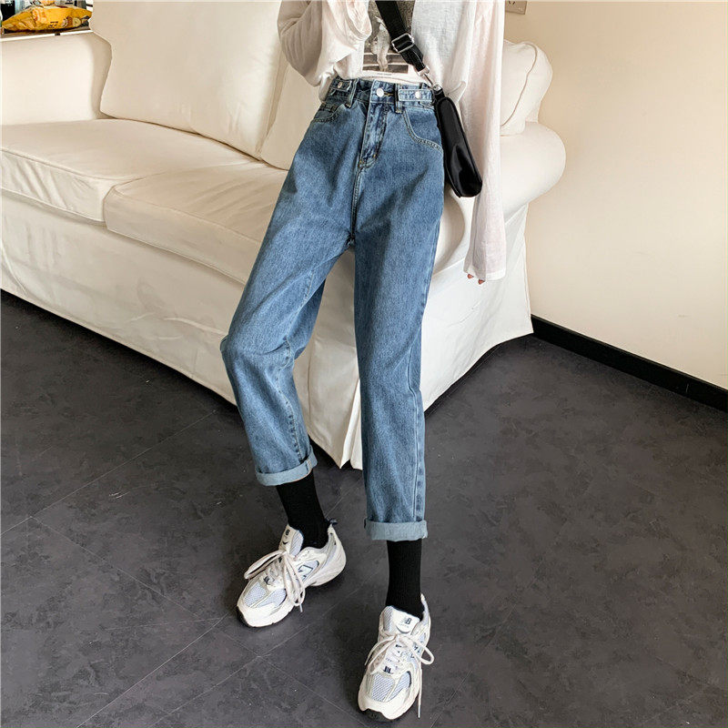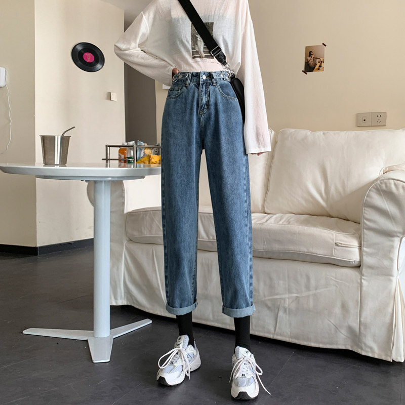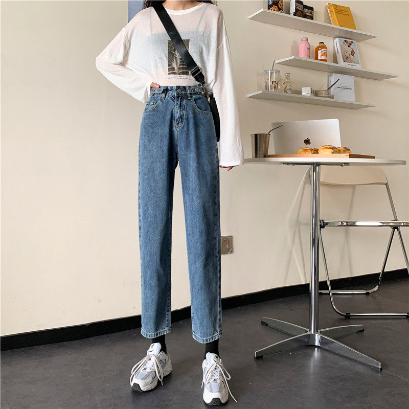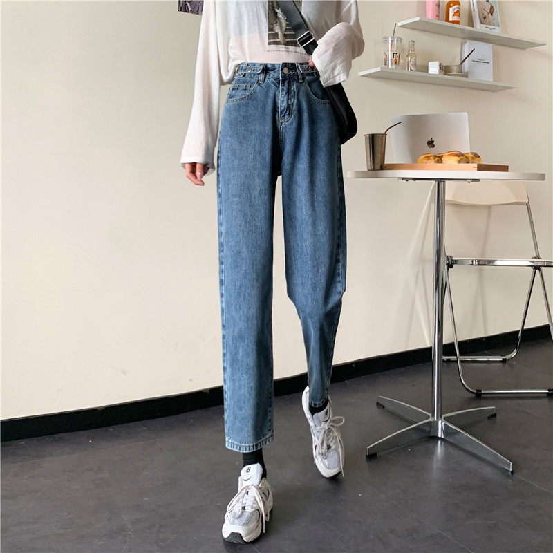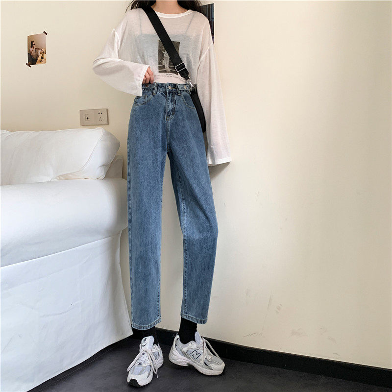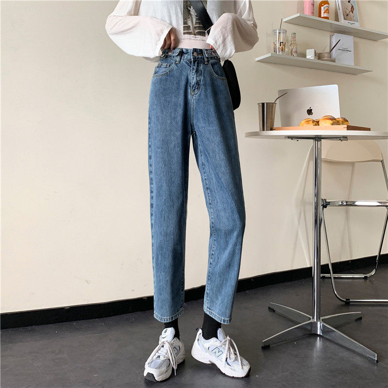 Осенние джинсы, демисезонные приталенные штаны, высокая талия, свободный прямой крой, большой размер