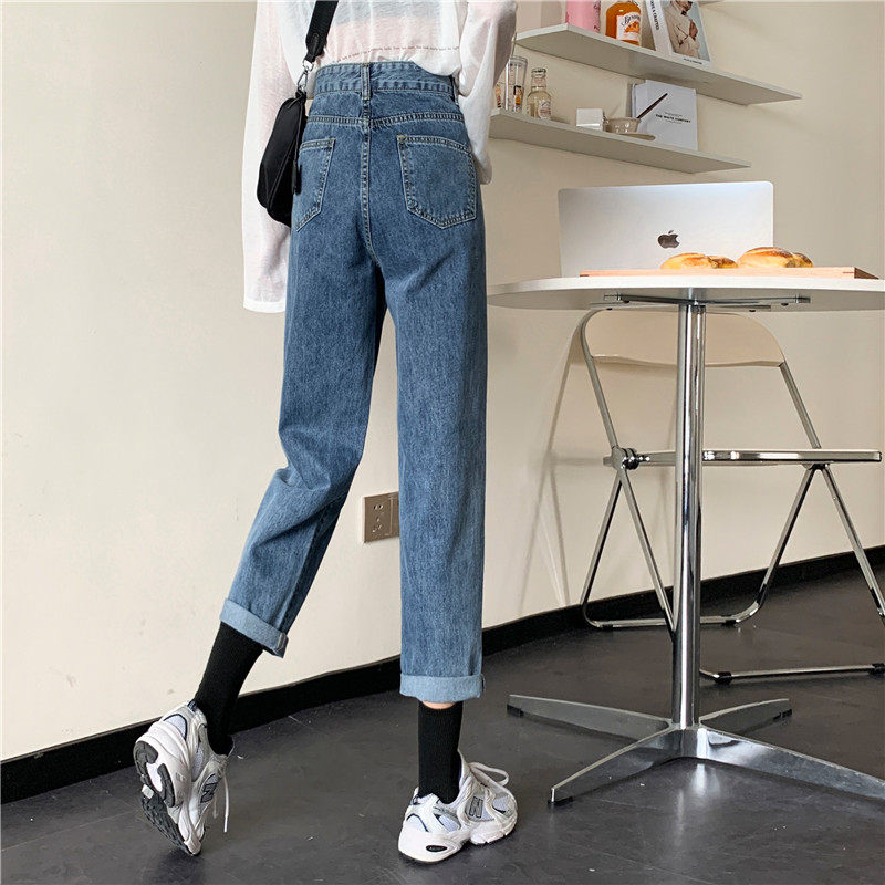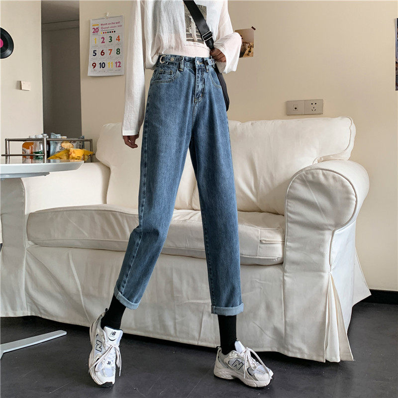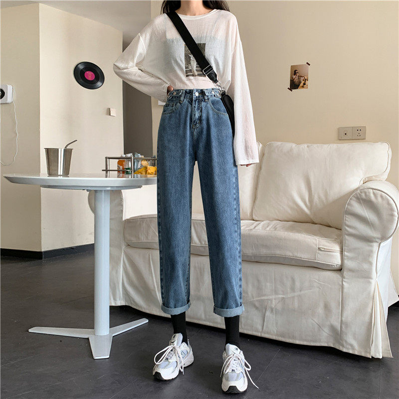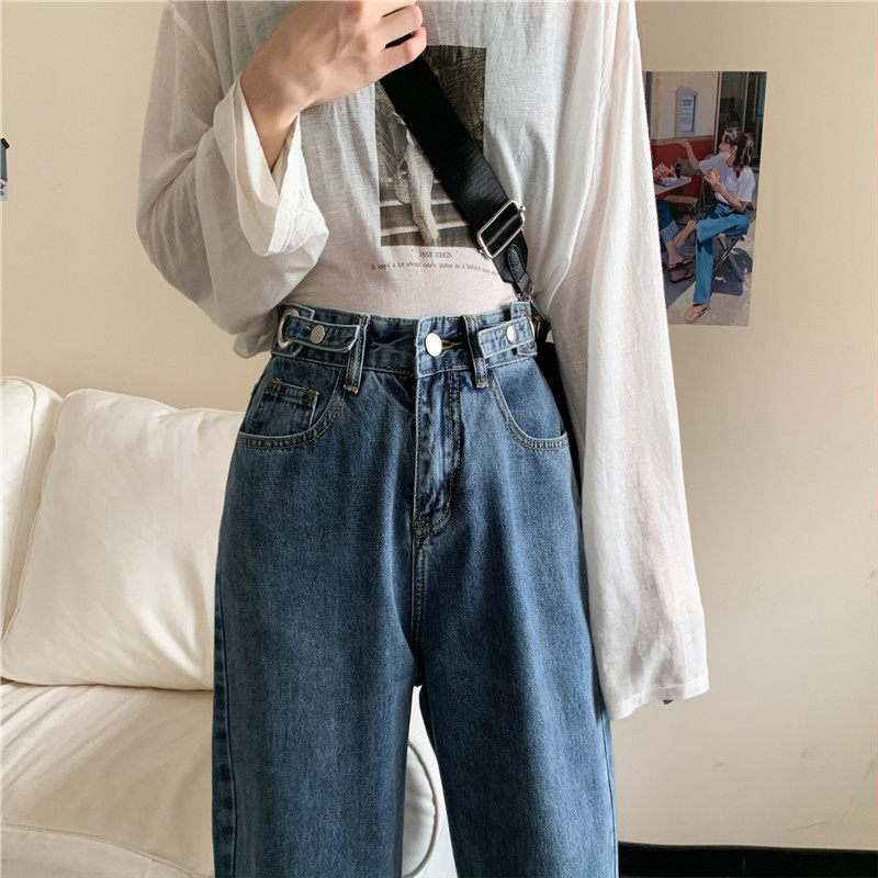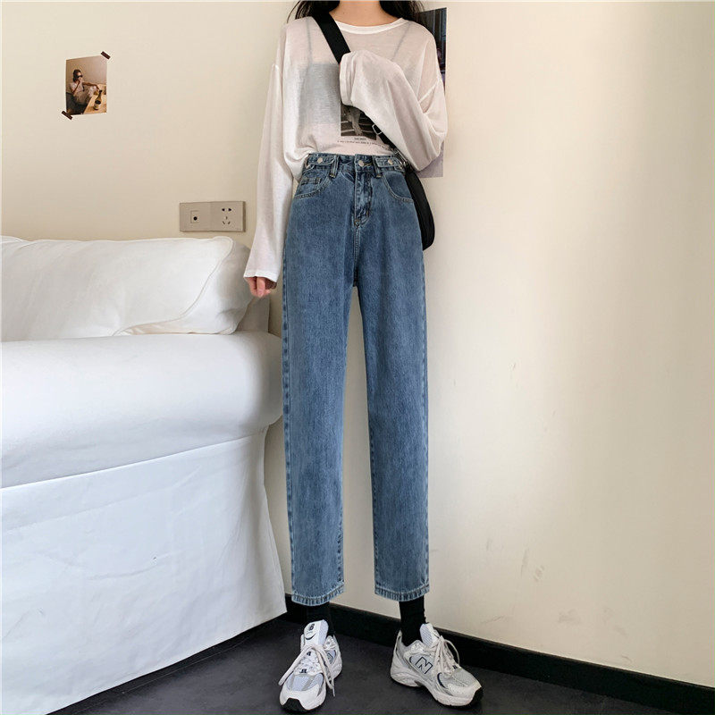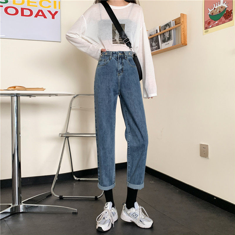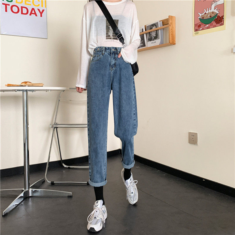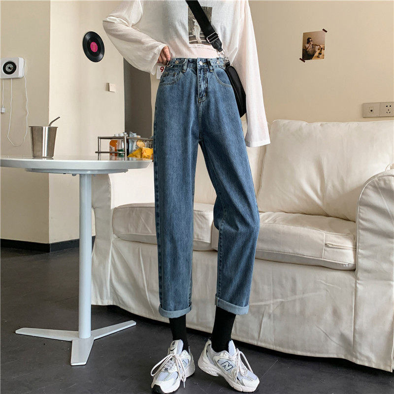 Осенние джинсы, демисезонные приталенные штаны, высокая талия, свободный прямой крой, большой размер