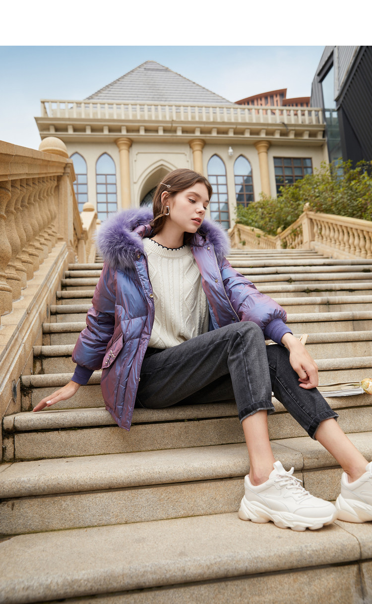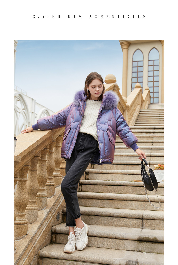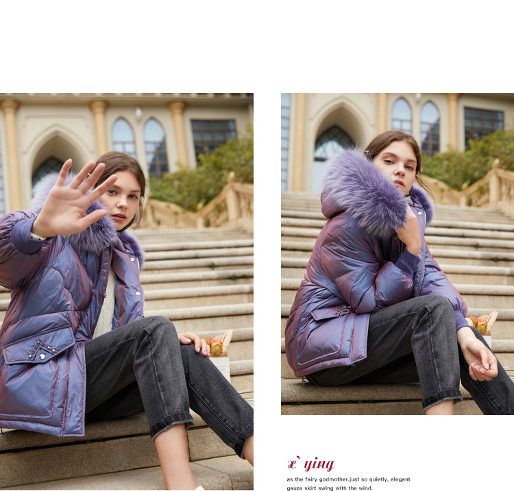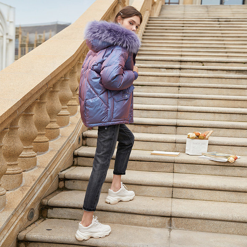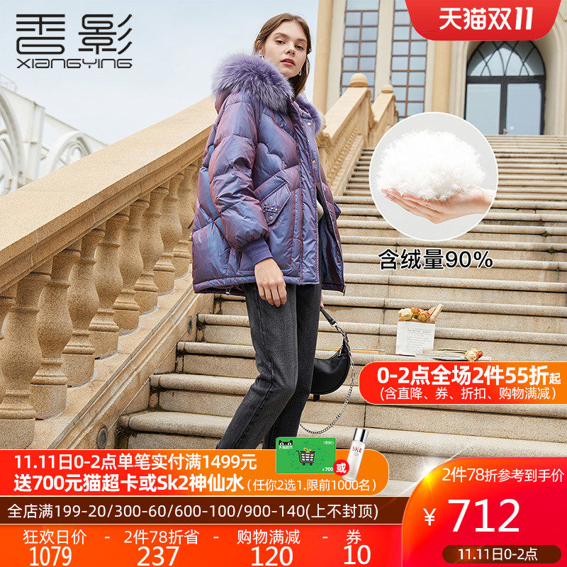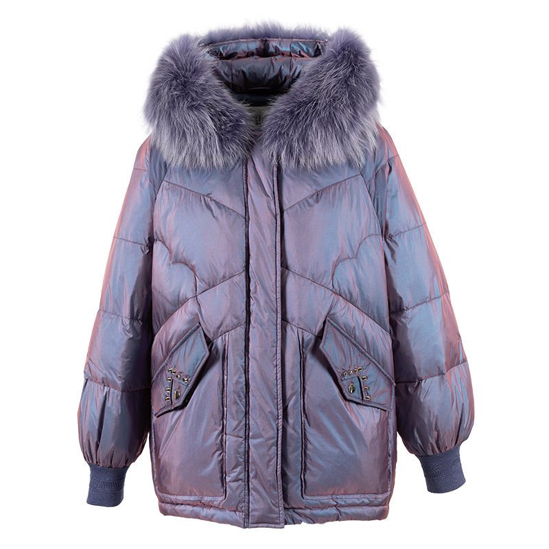 香影 Сиреневый глянцевый модный пуховик, длинная бархатная куртка, 2020, в корейском стиле, средней длины, утиный пух