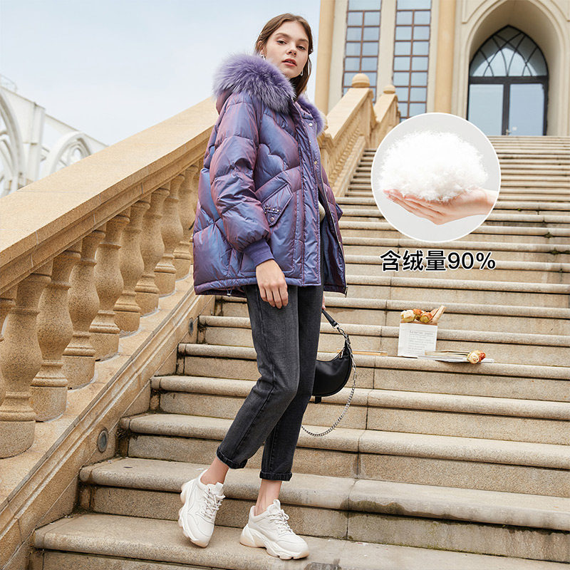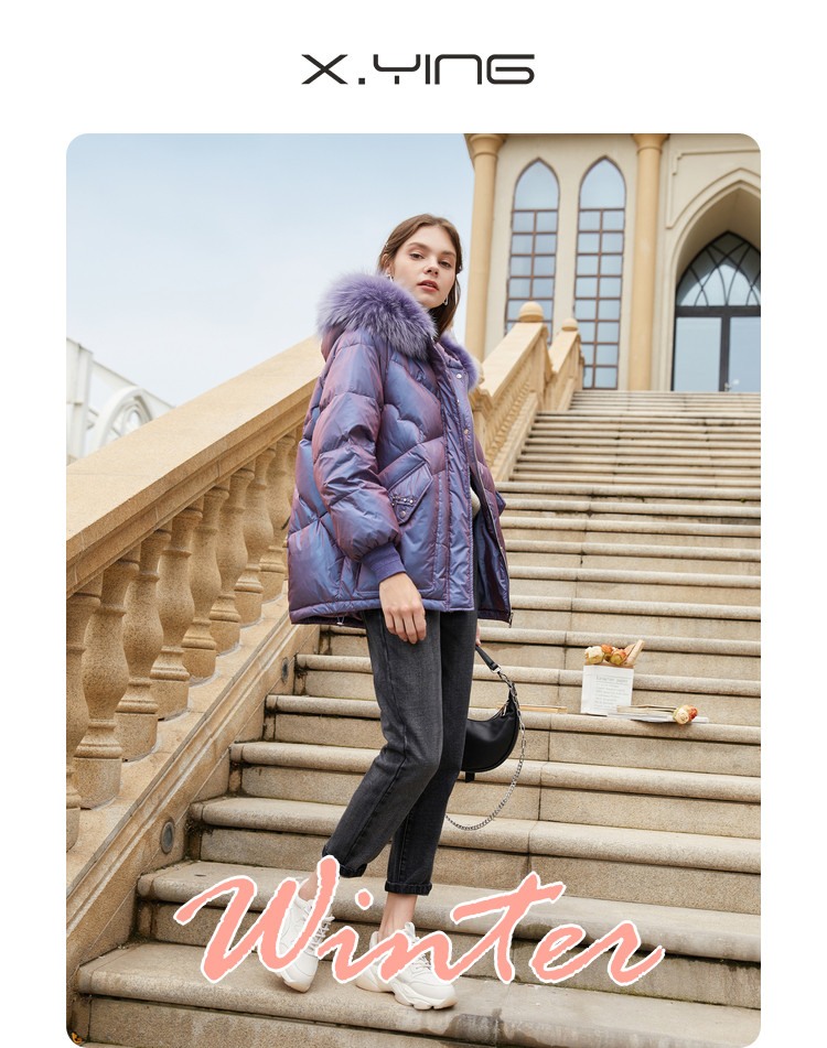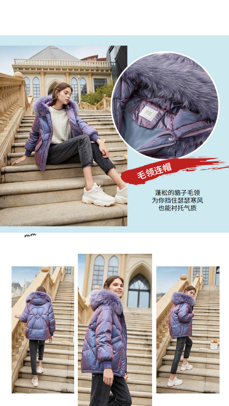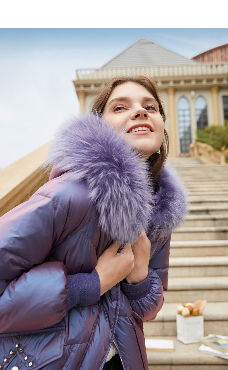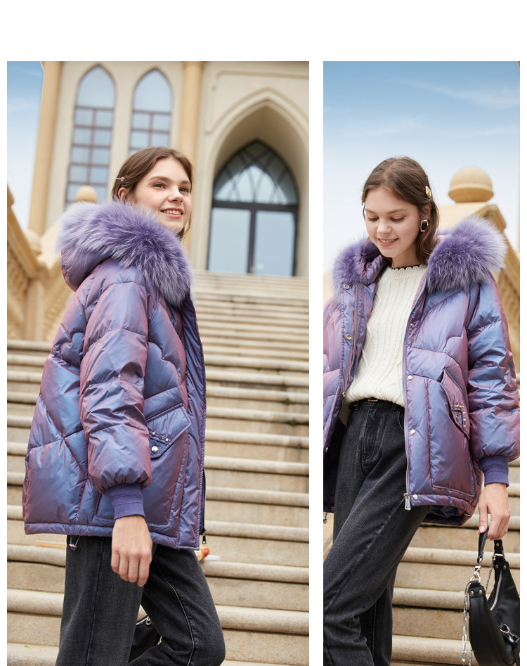 香影 Сиреневый глянцевый модный пуховик, длинная бархатная куртка, 2020, в корейском стиле, средней длины, утиный пух