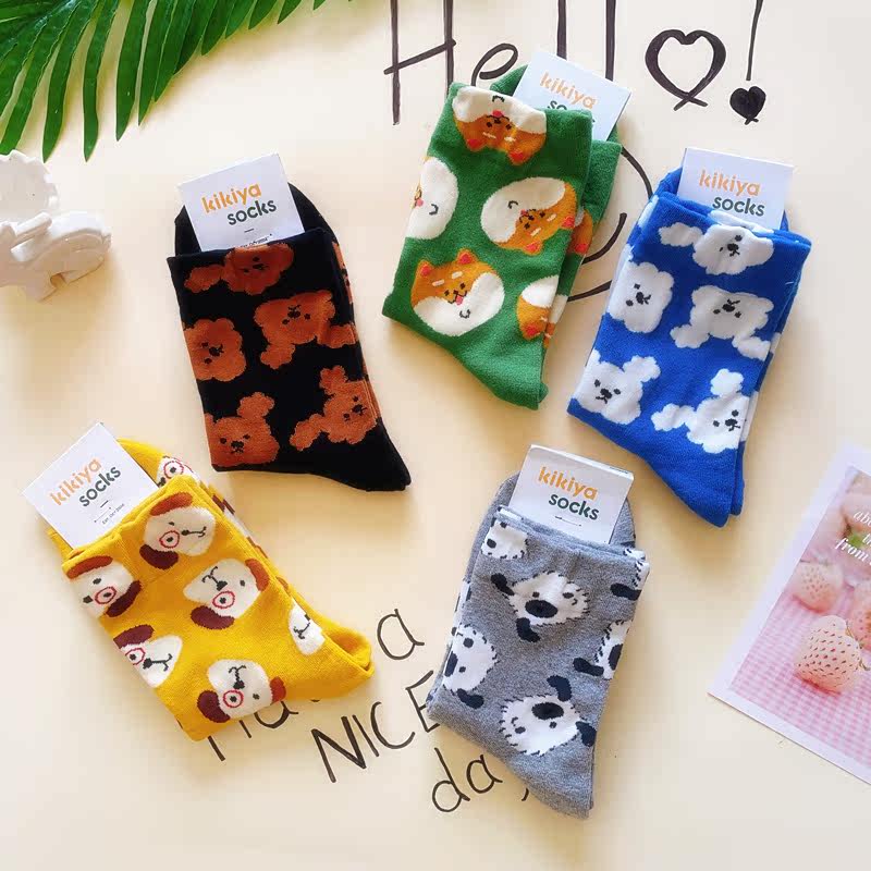 Милые импортные хлопковые демисезонные гольфы для школьников и студентов, средней длины, в корейском стиле