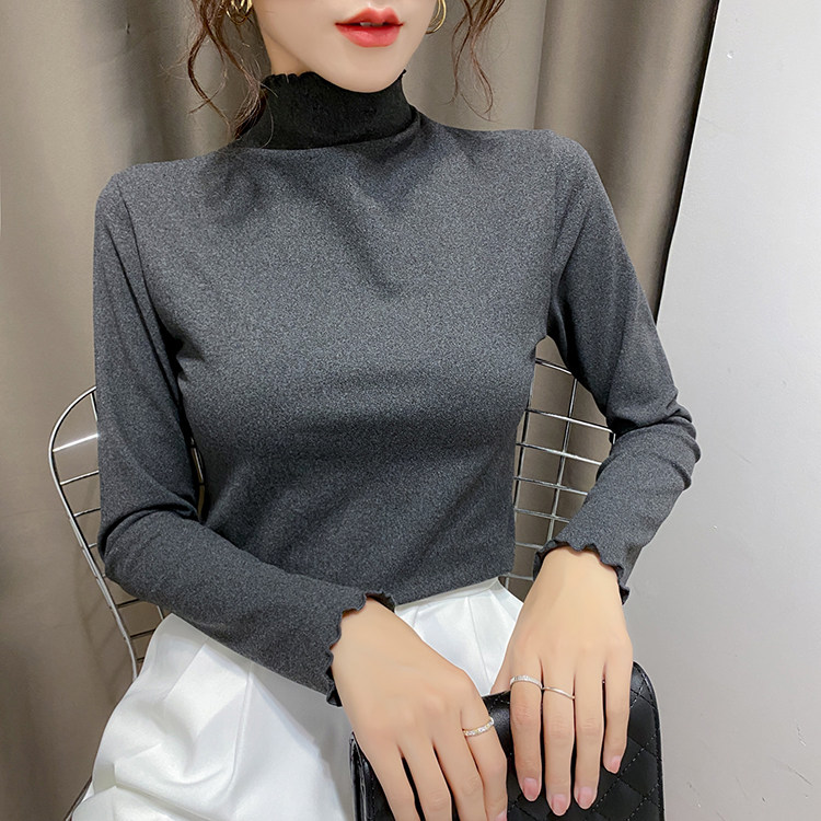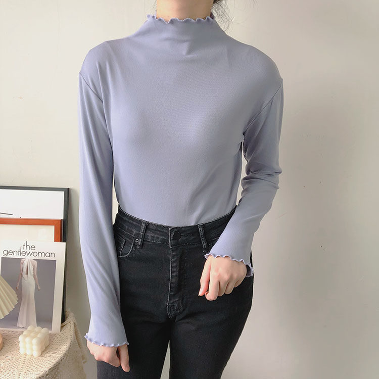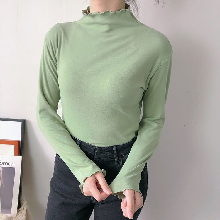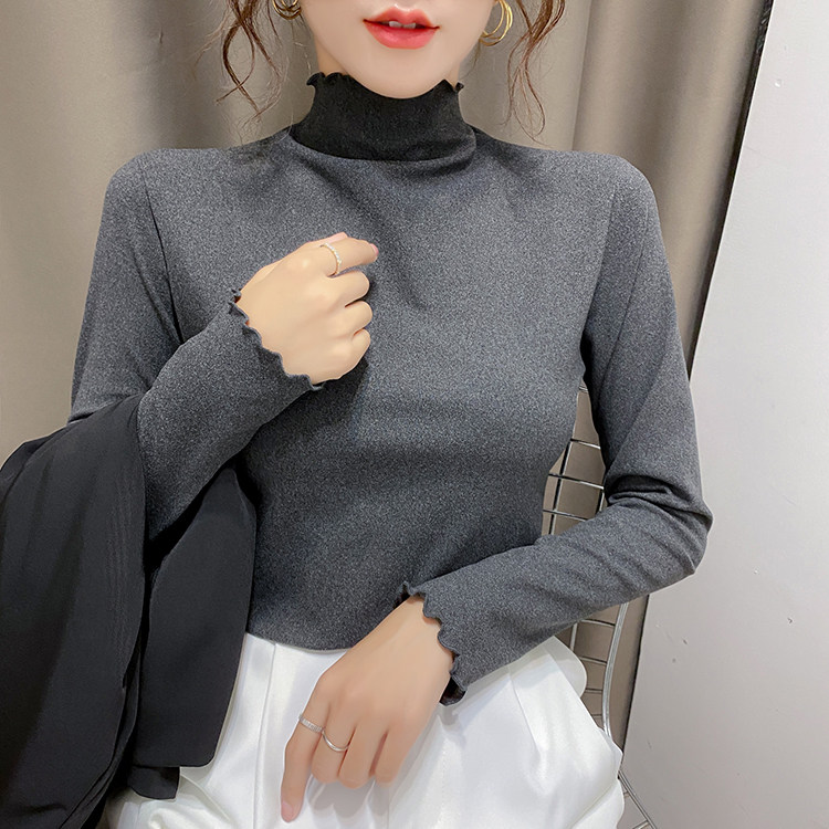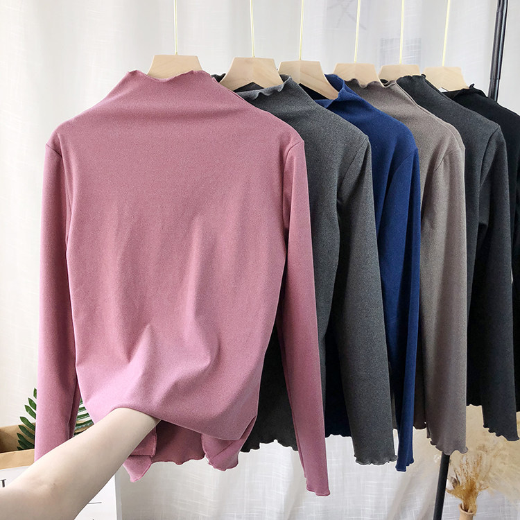 Бархатный базовый приятный телу лонгслив, высокий воротник, облегающий крой