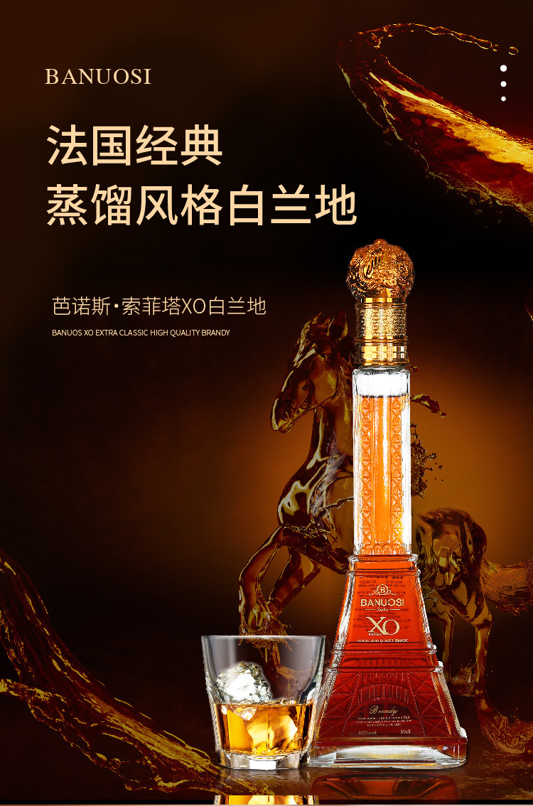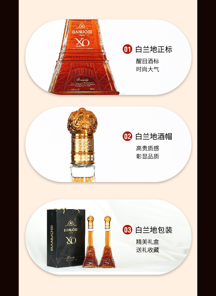 [Купить 1 Получить 1 бесплатно 1] Французское оригинальное вино импортировано Эйфелева башня XO Bailan Di Bai Bailan Land Set 40 градусов пламени