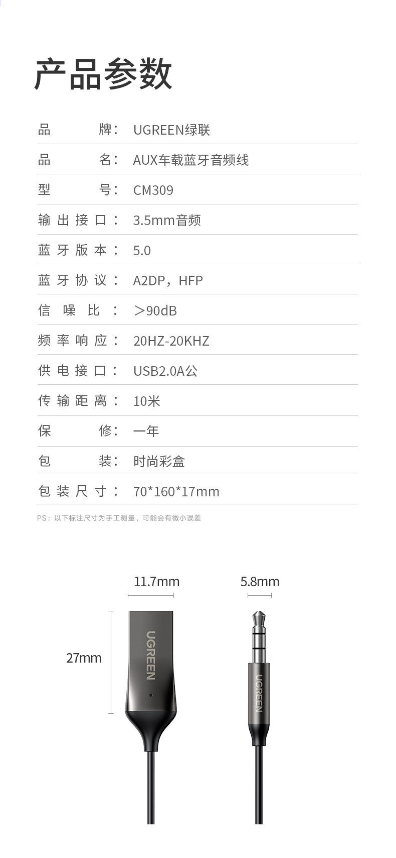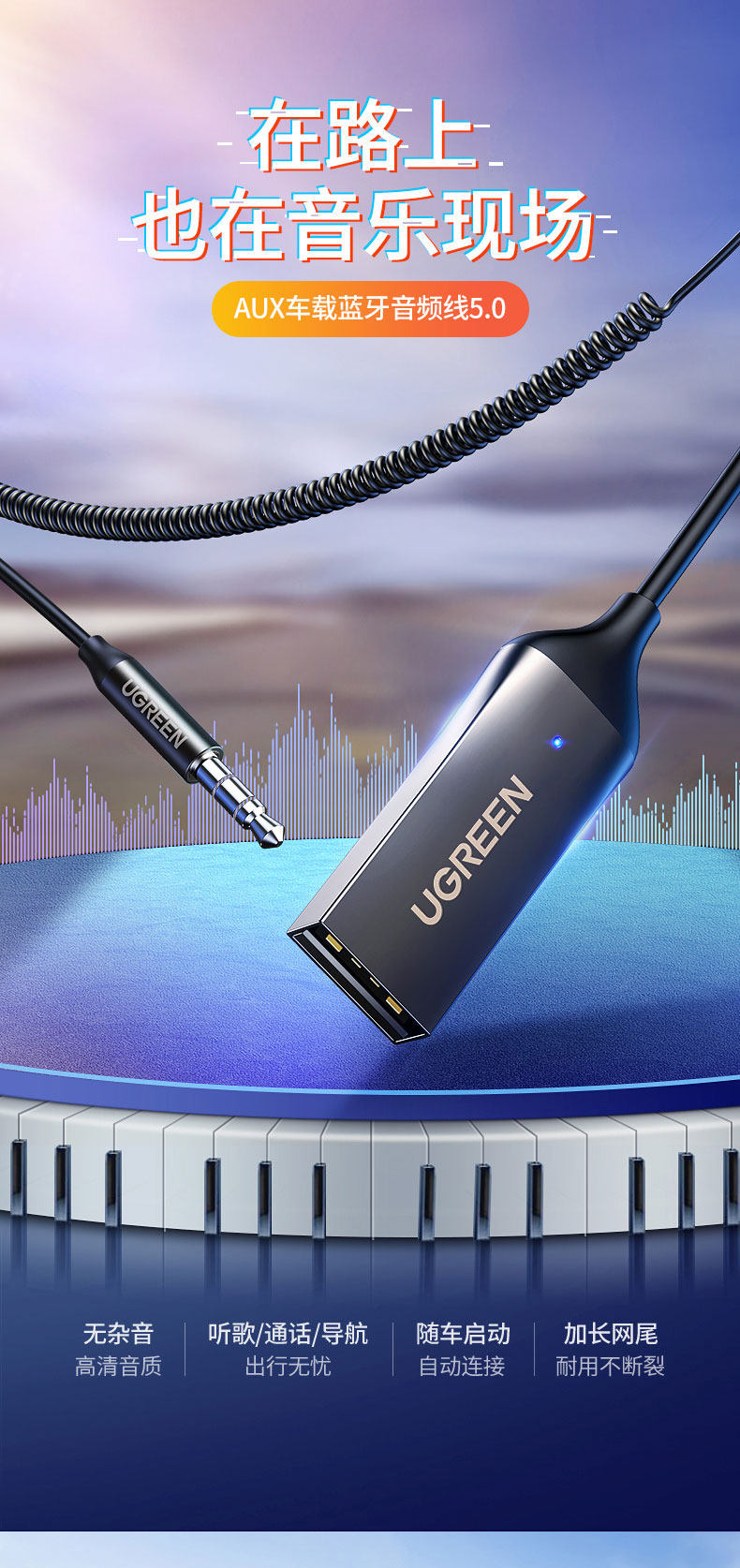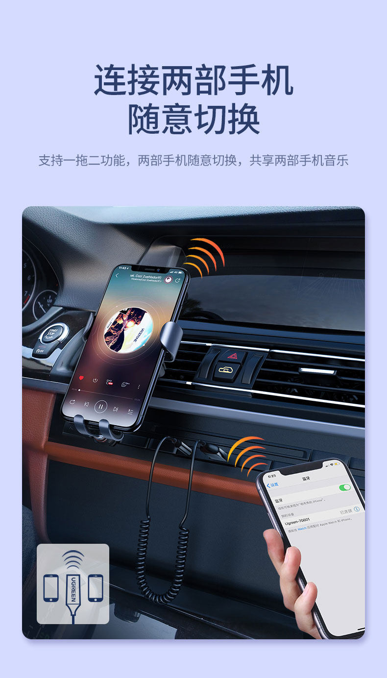 绿联 Автомобильный Bluetooth -приемник Aux Car USB интерфейс 3,5 мм беспроводной Bluetooth -стержень 5.0 игрок