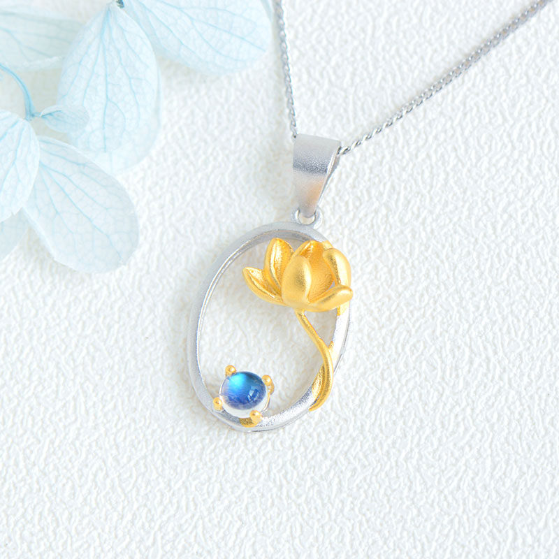 Натуральная подвеска, ожерелье, небольшая дизайнерская цепочка до ключиц, лунный камень, имитация льда, серебро 925 пробы, легкий роскошный стиль