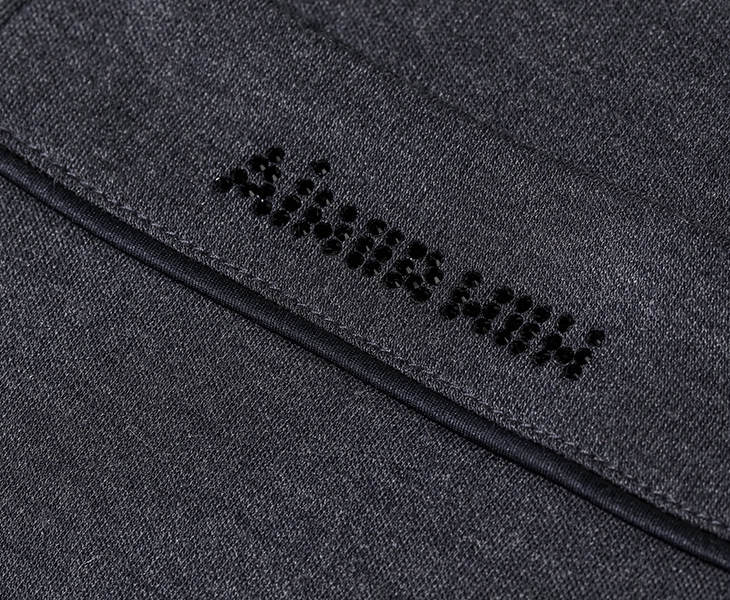 Рот украшен логотипом страза Сваровски.
