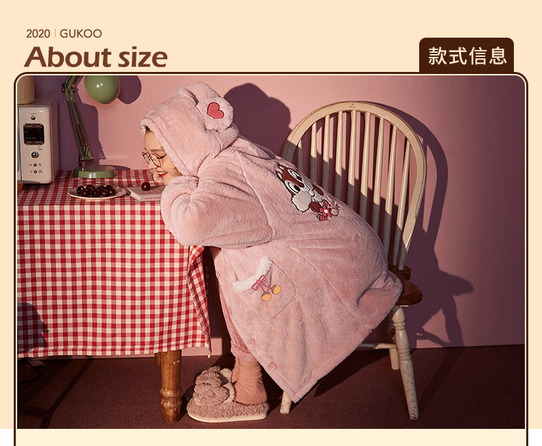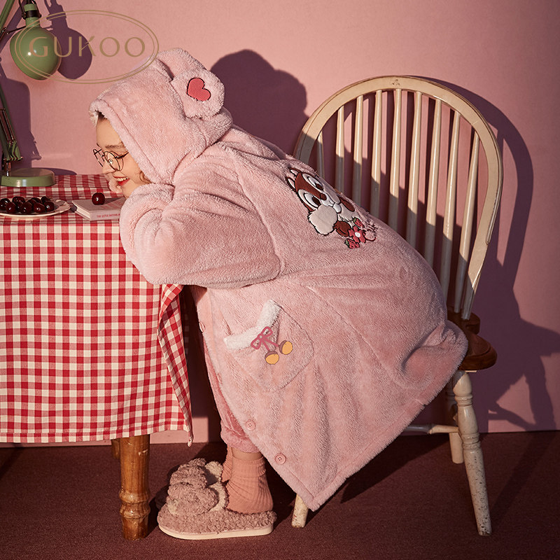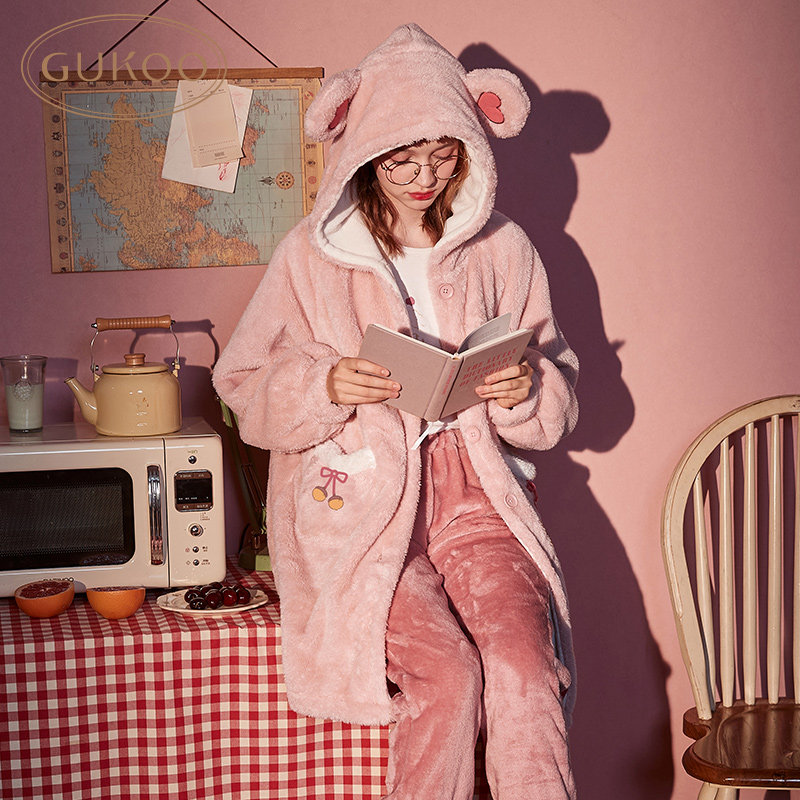 Gukoo/果壳 Демисезонная коралловая бархатная пижама, удерживающий тепло комфортный комплект