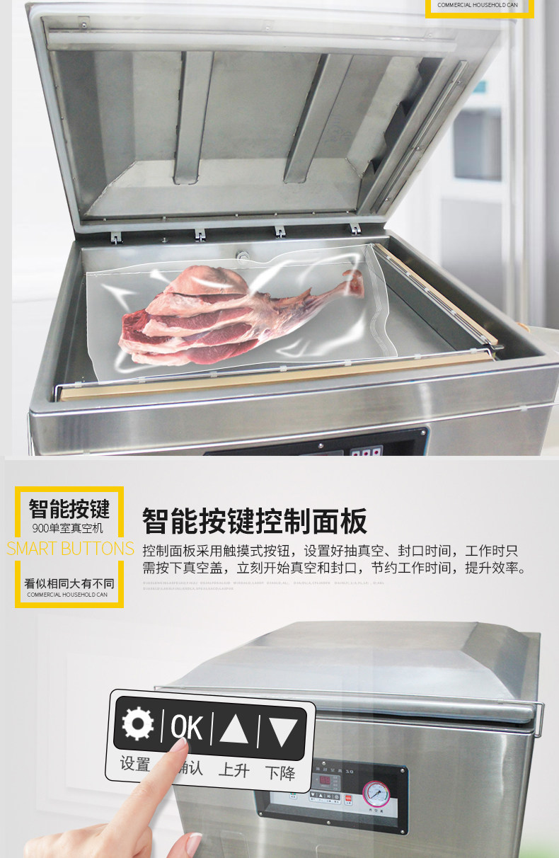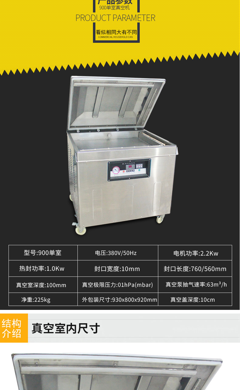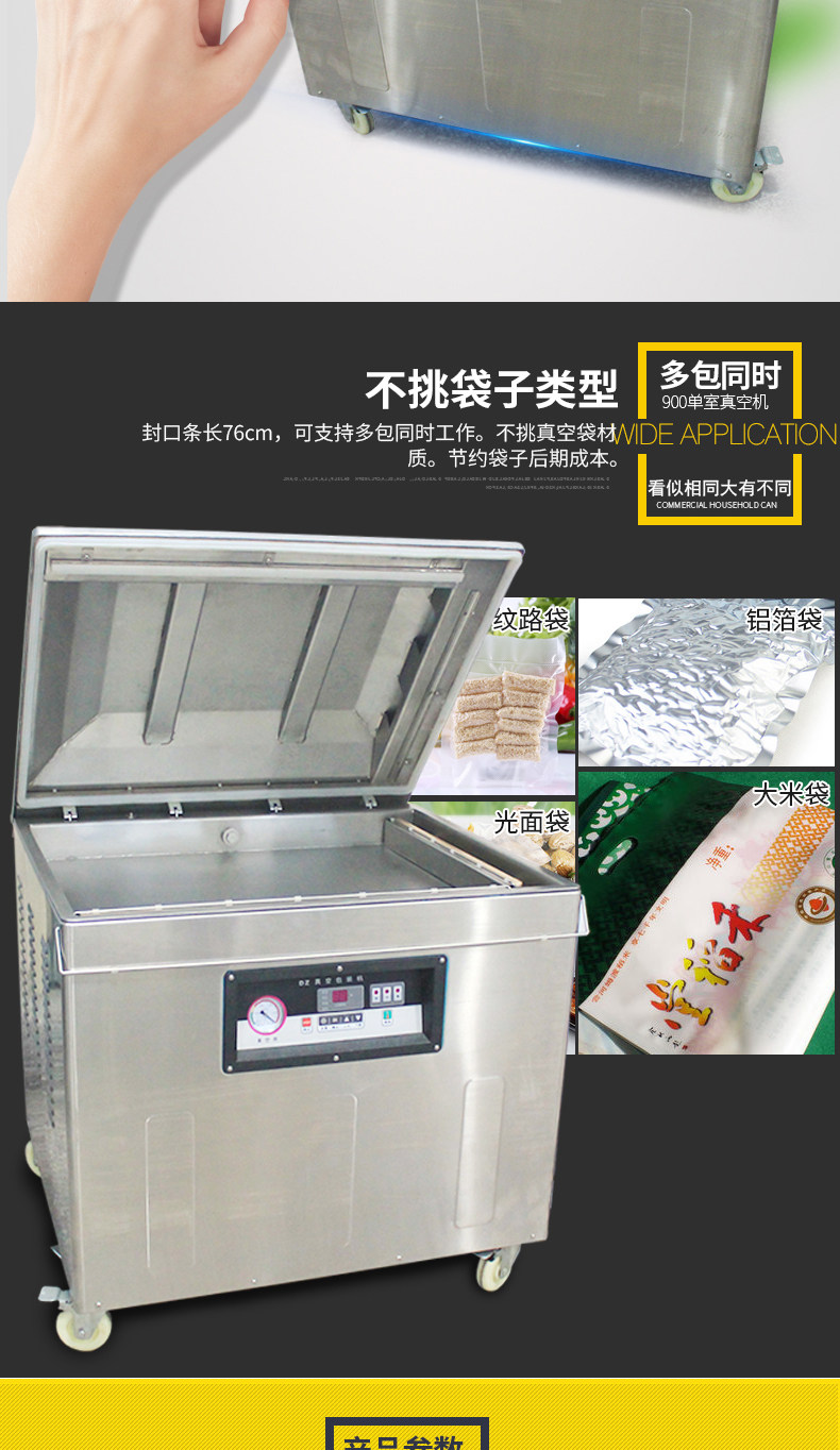 DZ900 Одно -комнатная вакуумная машина Коммерческая большая вакуумная уплотняная машина для перекачки рисовой ветчины латексная подушка вакуумная упаковка сухость и мокрый уплотнительный