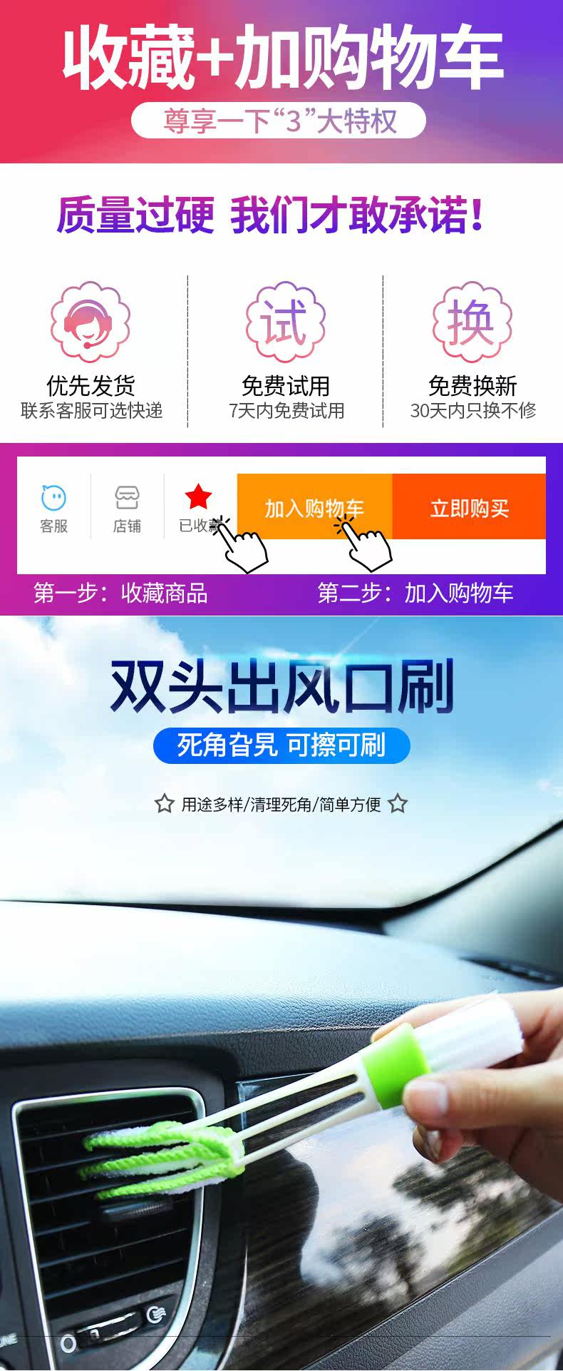 Автомобильный воздух -кондиционирование выходы Чистая щетка для очистки автомобильной мыть