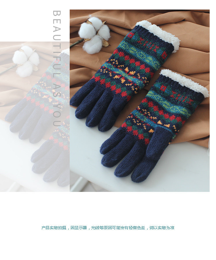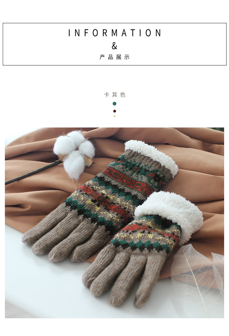 Ретро трикотажные демисезонные флисовые удерживающие тепло перчатки, в корейском стиле