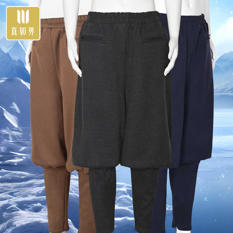真如界 Зимние флисовые удерживающие тепло штаны подходит для мужчин и женщин для пожилых людей, для среднего возраста, свободный крой