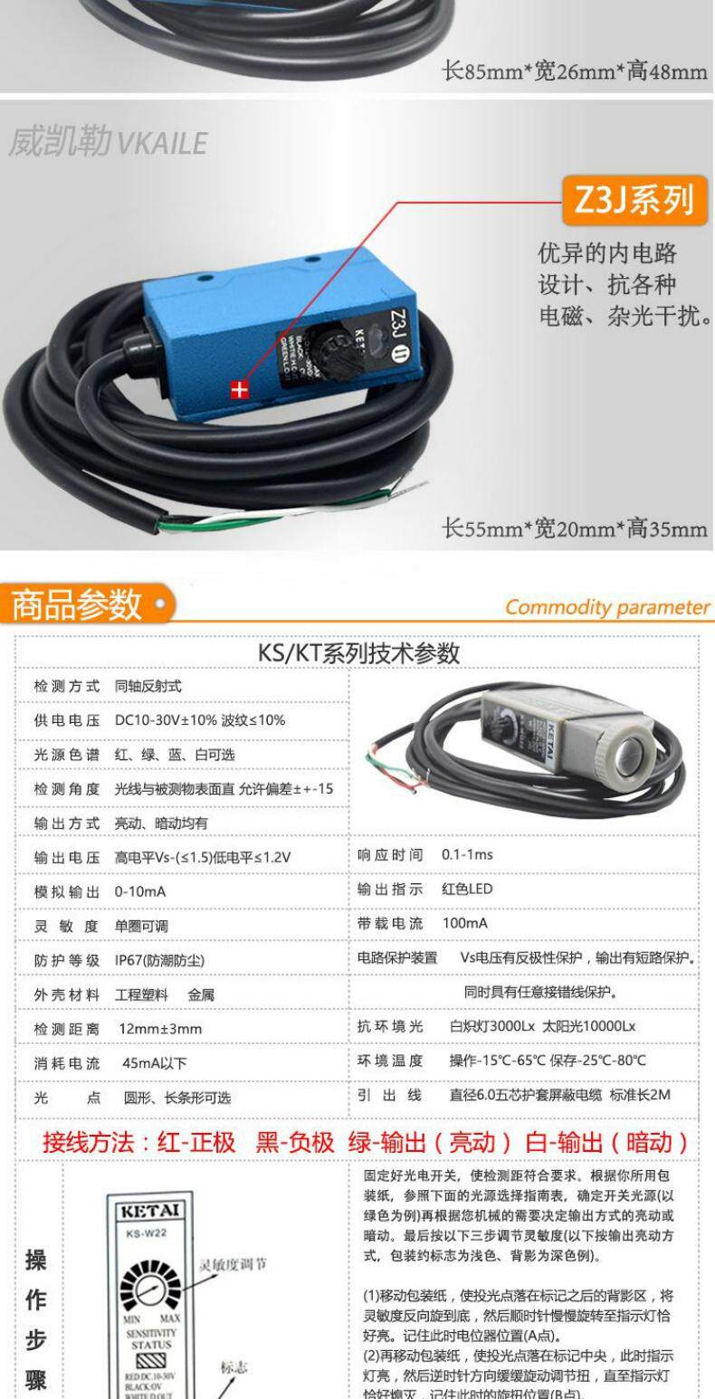 Кетай Цвет Стандартный датчик KT-RG22 Фотоэлектрический пакет для глаз Машина фотоэлектрическая коррекция глаз Электрофический глаз