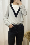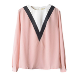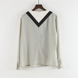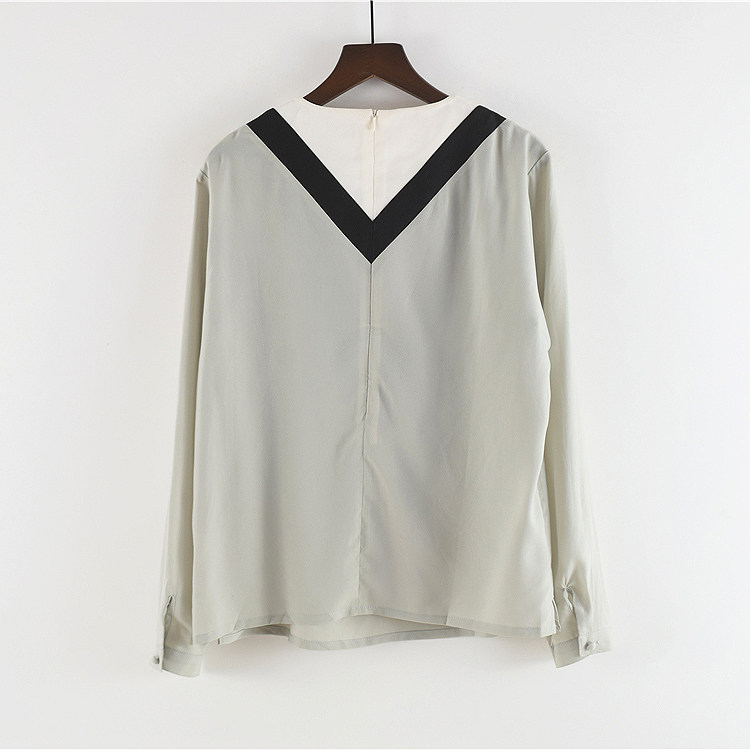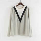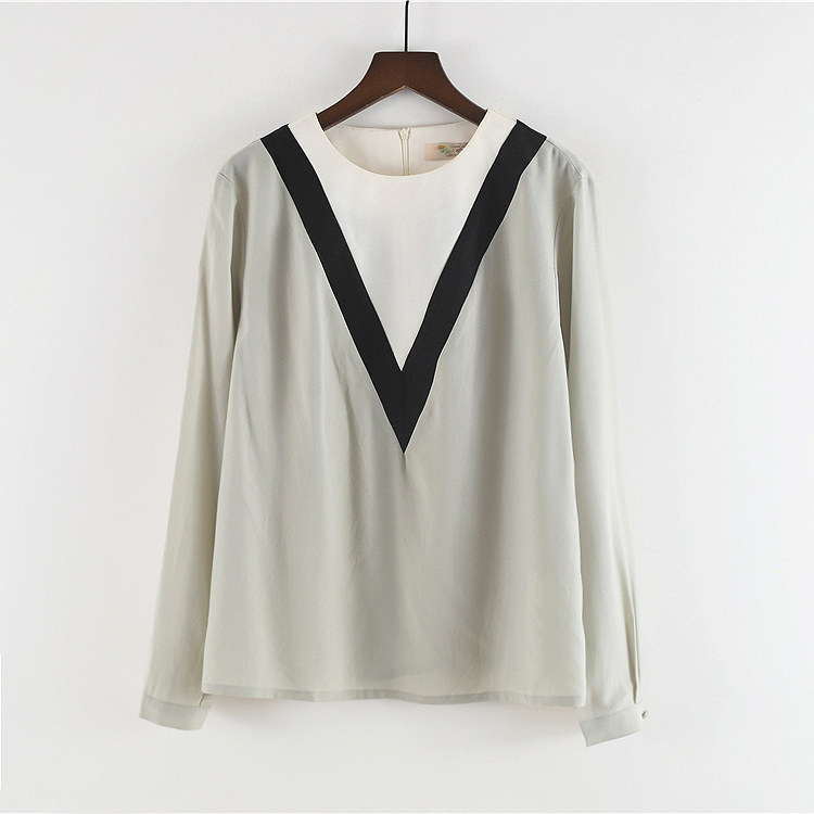 Шифоновый осенний тонкий брендовый лонгслив с круглым воротником, свободный крой