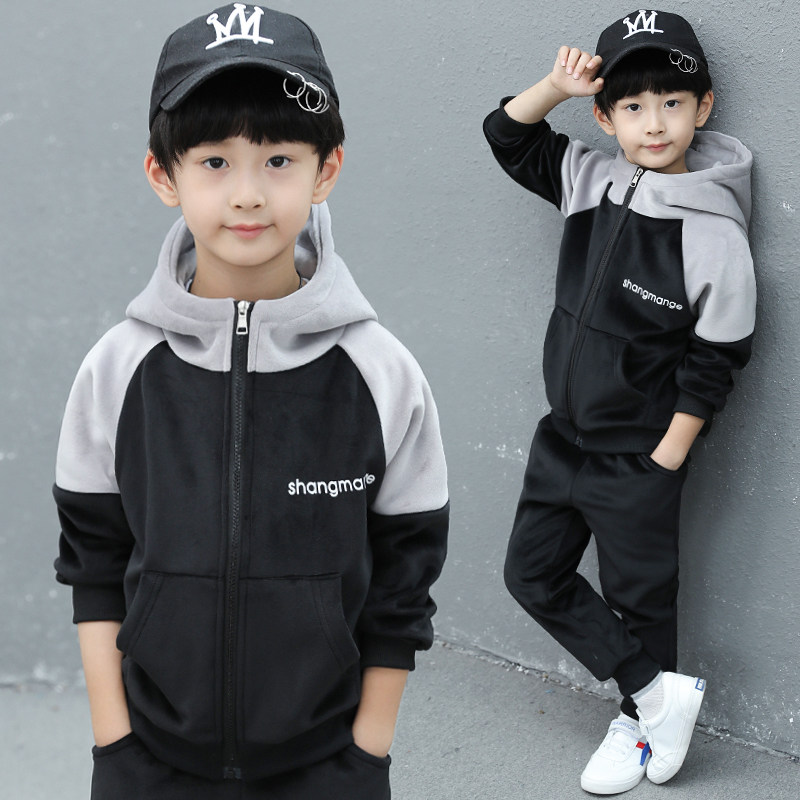 Осенняя летняя одежда, детский демисезонный бархатный комплект для мальчиков, 2020, в западном стиле, в корейском стиле, подходит для подростков