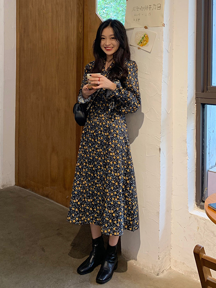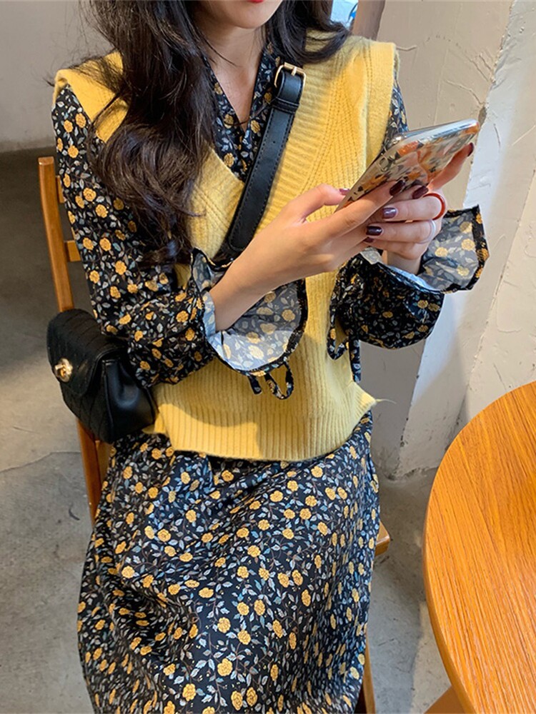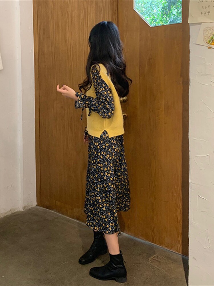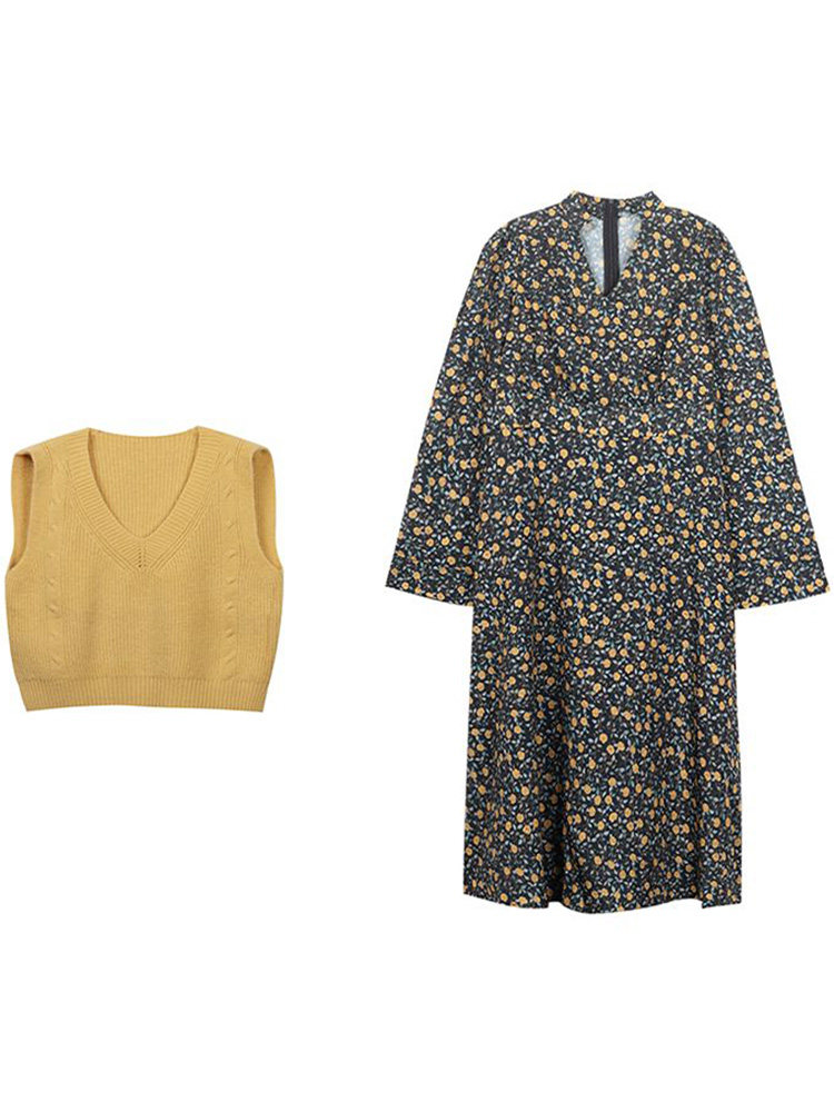 Платье, комплект, осенняя демисезонная юбка, коллекция 2022, подходит для подростков, в стиле Шанель, в цветочек, в западном стиле