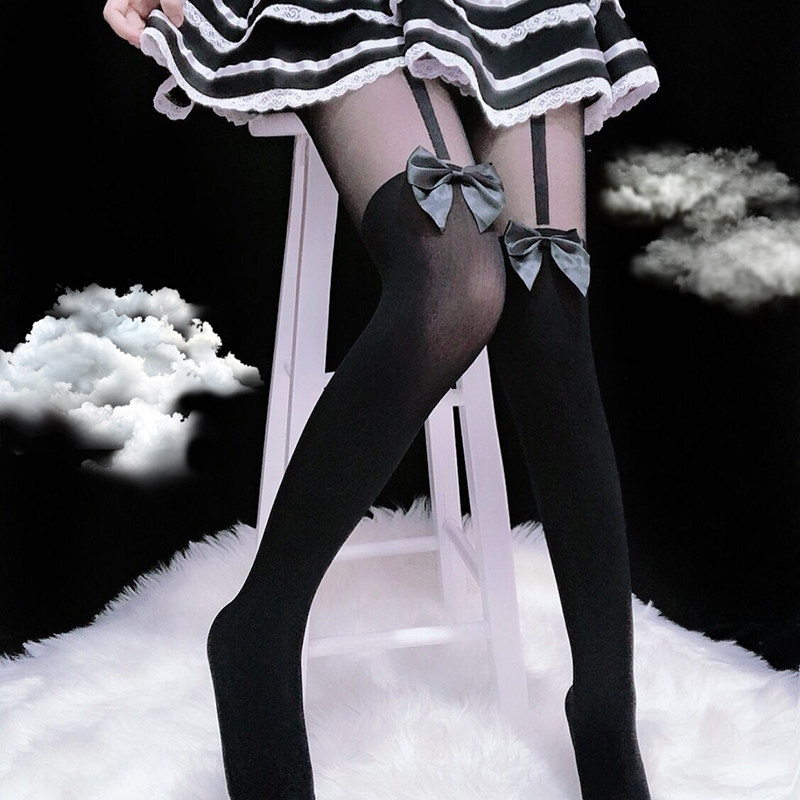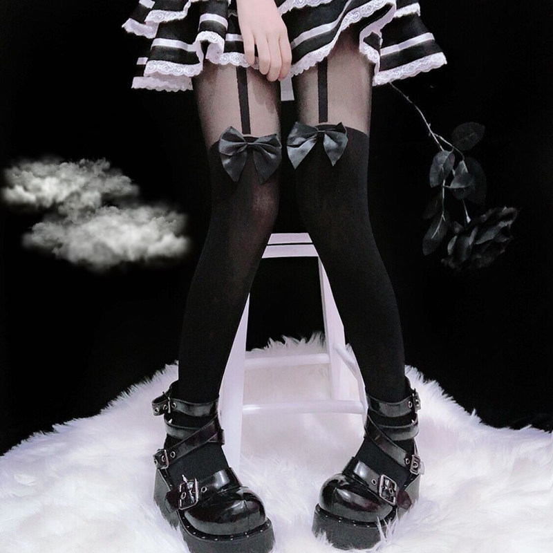 Японские сексуальные белые колготки с бантиком, тонкие носки, стиль Лолита, длина миди