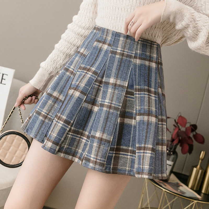 Шерстяная демисезонная юбка в складку, универсальное защитное белье, шорты, коллекция 2021, высокая талия, А-силуэт