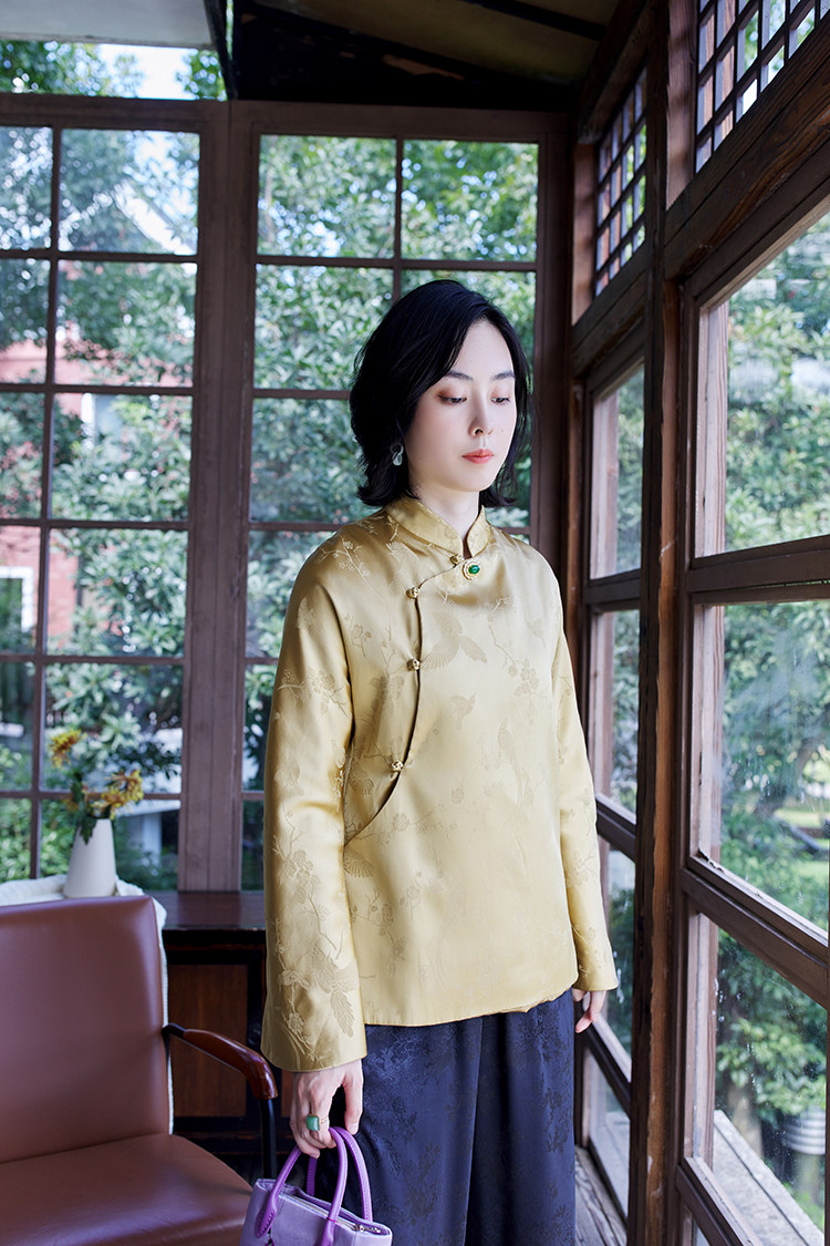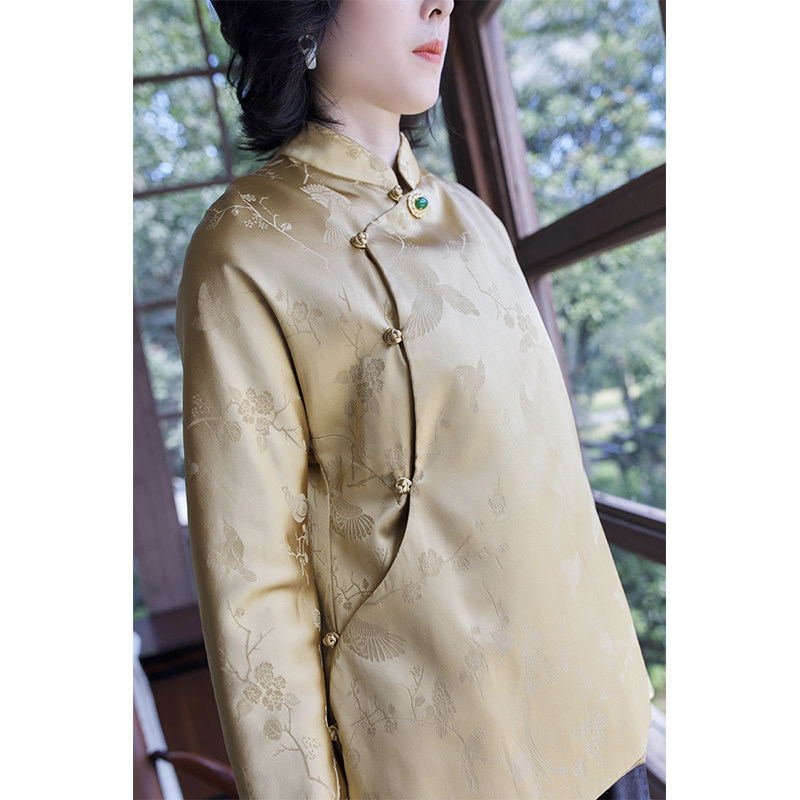 Осенняя ретро шелковая куртка, ципао, китайский стиль