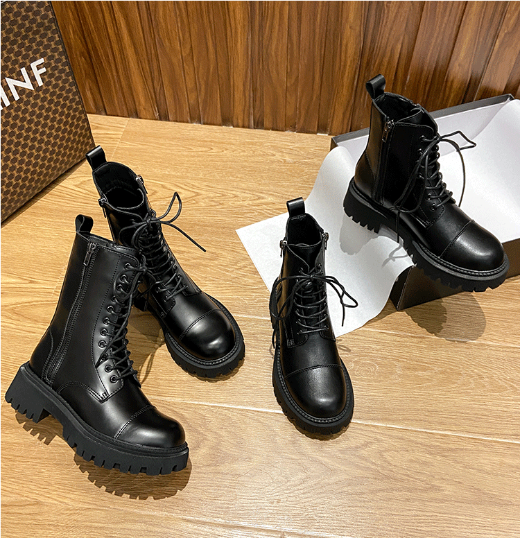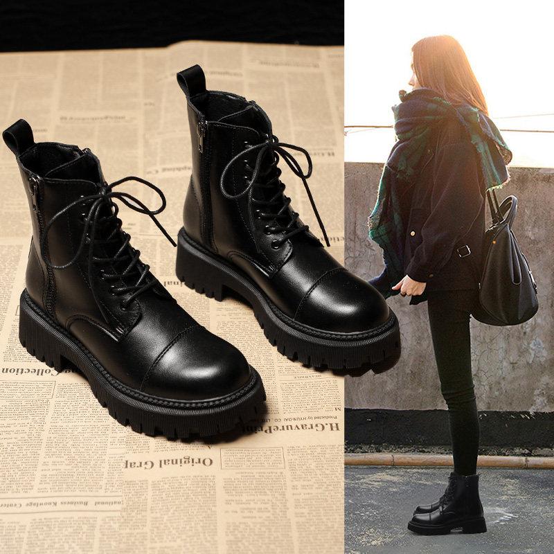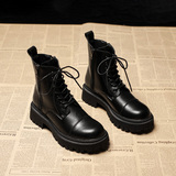 Martens, Tide, демисезонные универсальные черные короткие сапоги в английском стиле на платформе, из натуральной кожи, в британском стиле