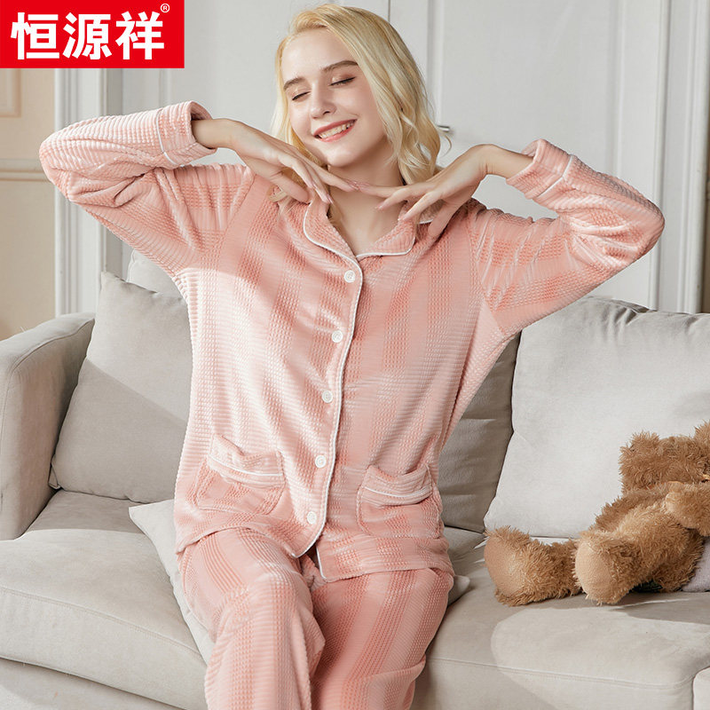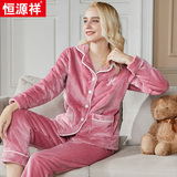 恒源祥 Демисезонная пижама, коралловое бархатное термобелье для пожилых людей, фланелевый утепленный лонгслив, комплект, для среднего возраста