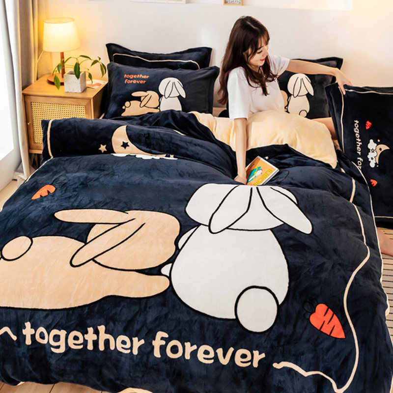 Коралловый зимний фланелевый комплект, двусторонний пододеяльник, простыня, увеличенная толщина, 4 предмета, 3 предмета