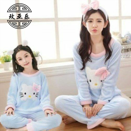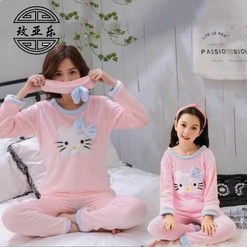 Демисезонная детская фланелевая пижама, коралловый бархатный комплект, домашняя одежда, подходит для подростков, семейный стиль