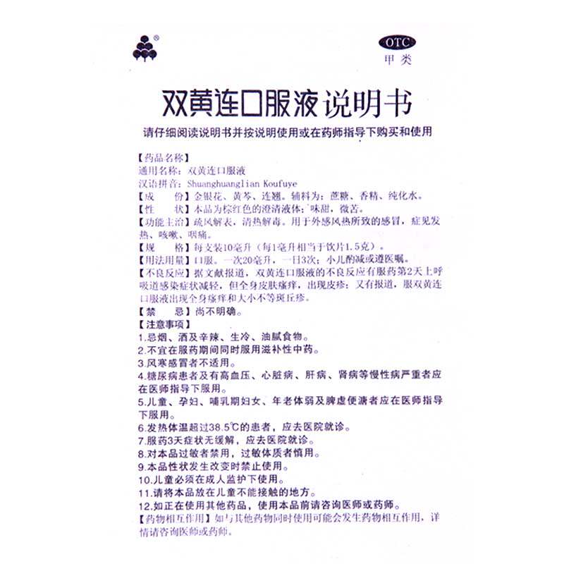 福森 Шуанхуанглианская пероральная пероральная жидкость 10 мл*10 ветра -повладение, тепло, кашель, сипид, расслабление, детоксикация головная боль
