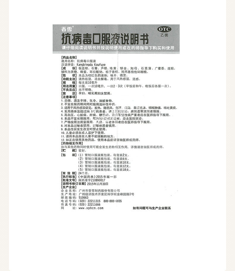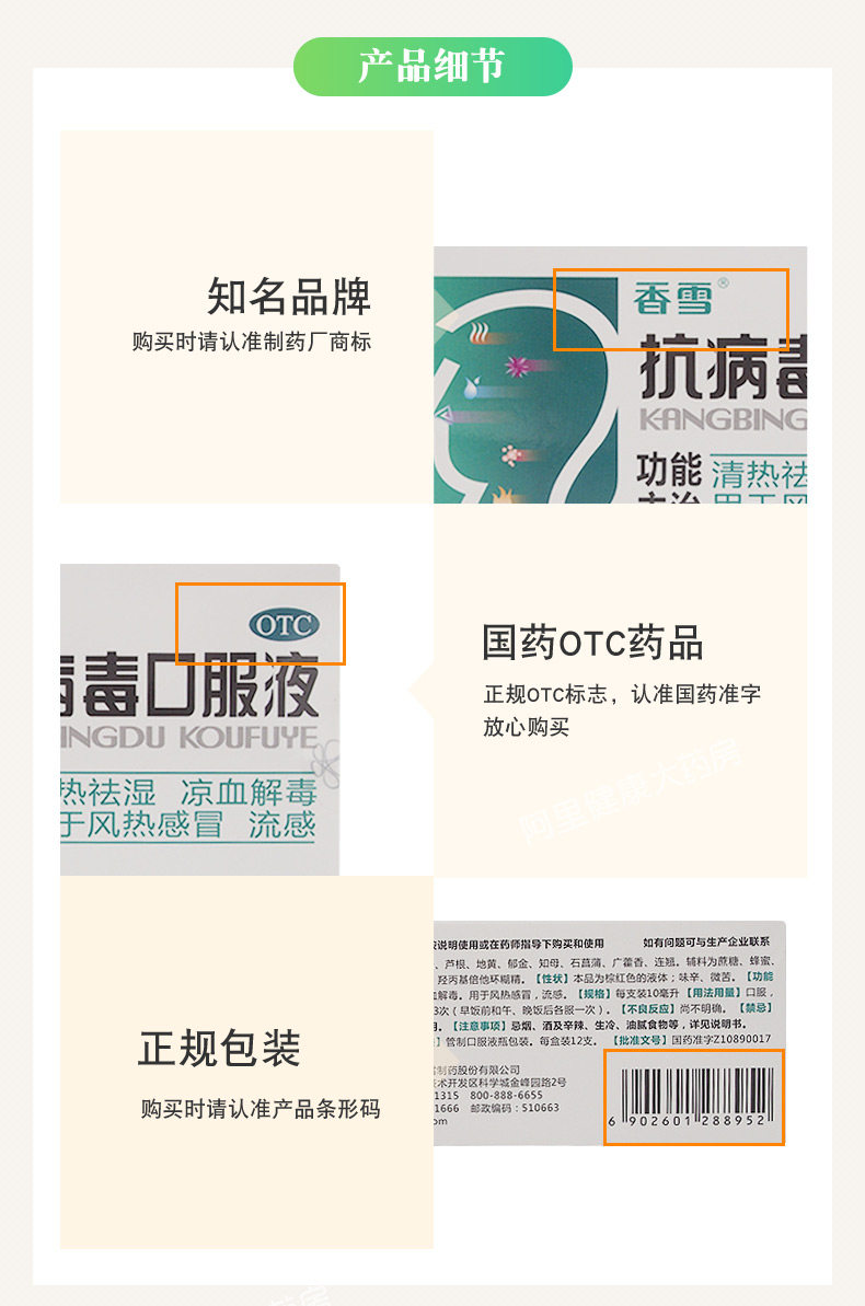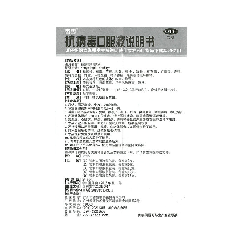 香雪 Анти -вирусный пероральный раствор 10 мл*12 поддерживает тепло и влажные вирусные вирусные инфекции Ветровой тепло, холод и грипп