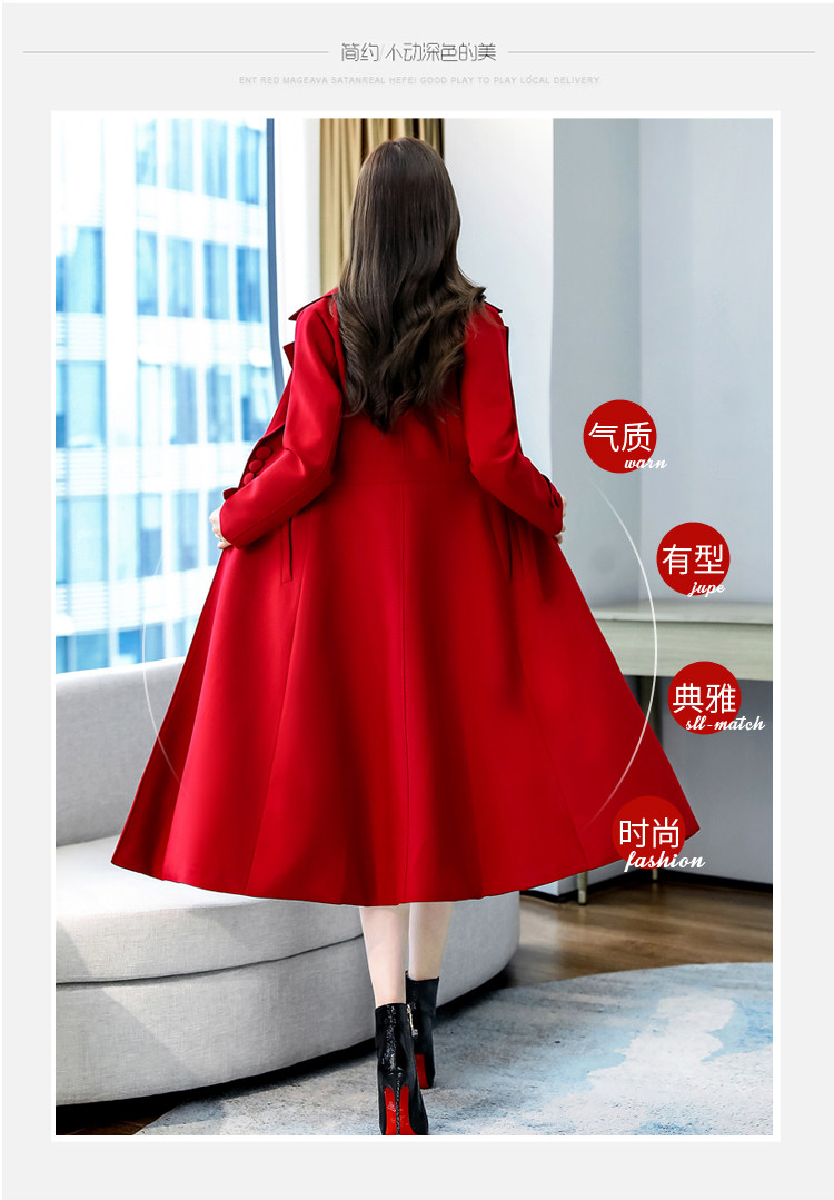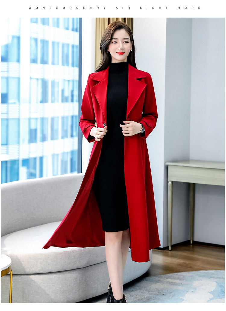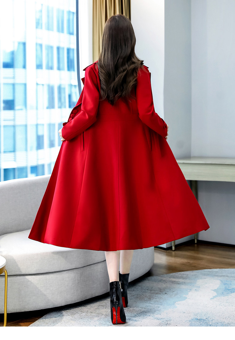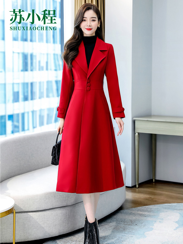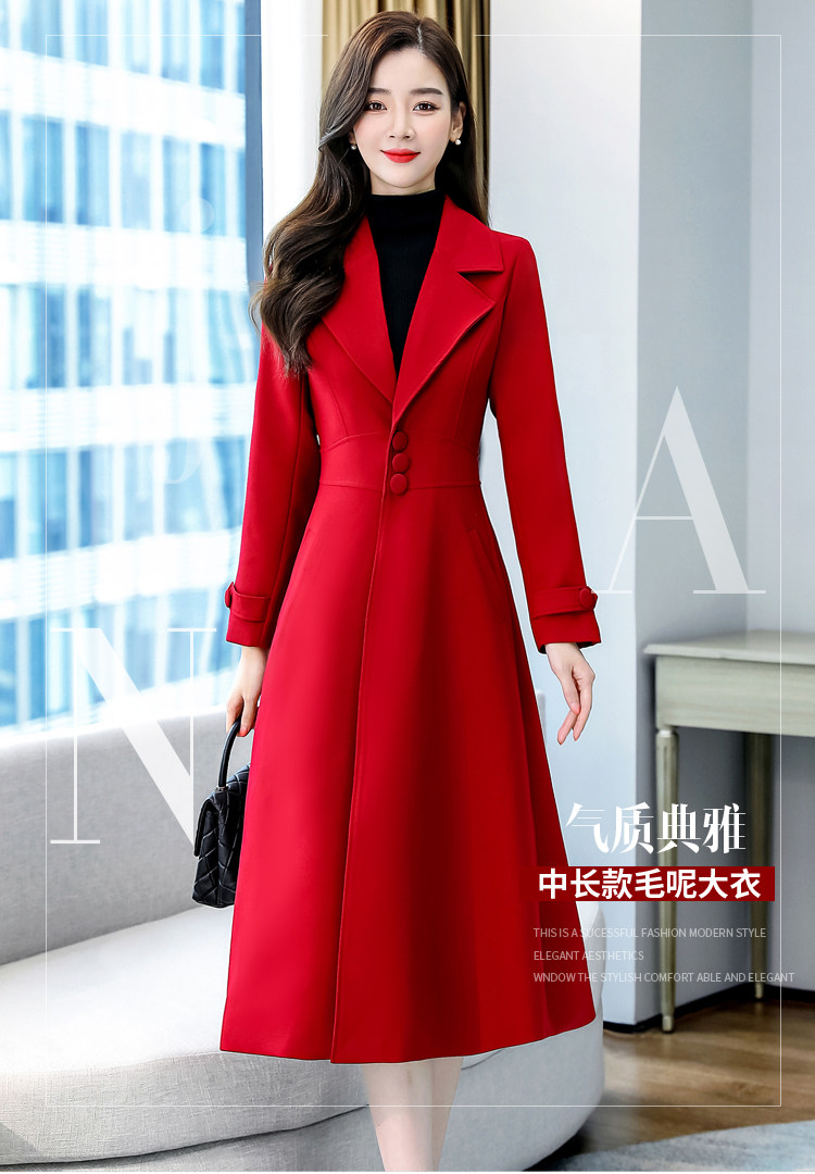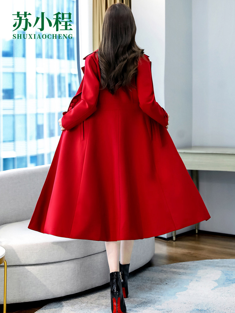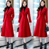 Красное шерстяное пальто, длинная весенняя осенняя куртка, средней длины, 2024 года, увеличенная толщина