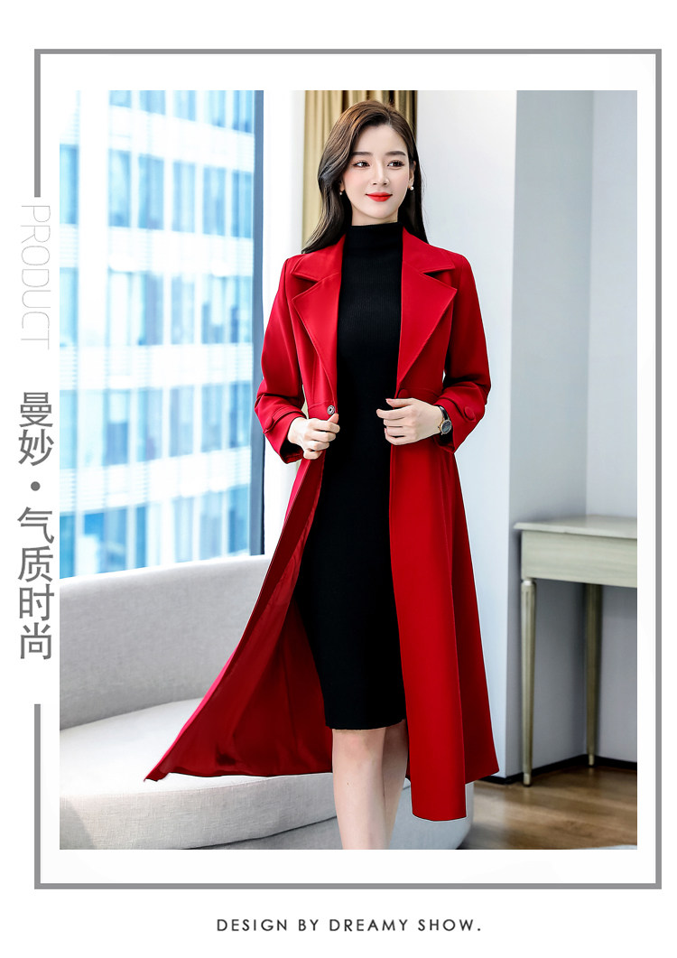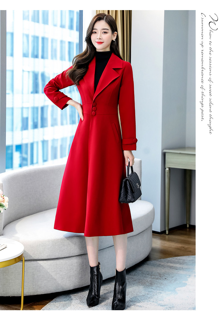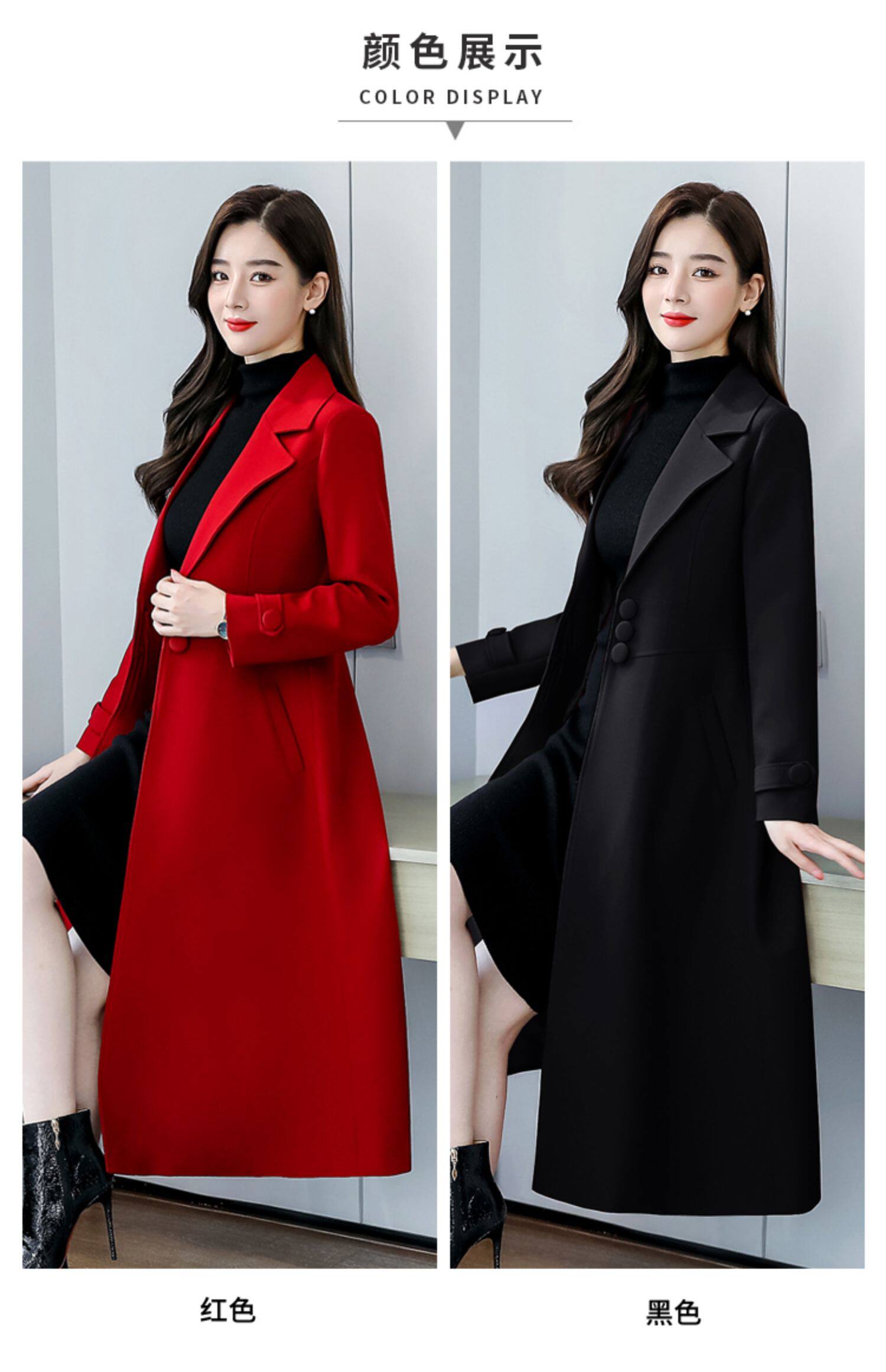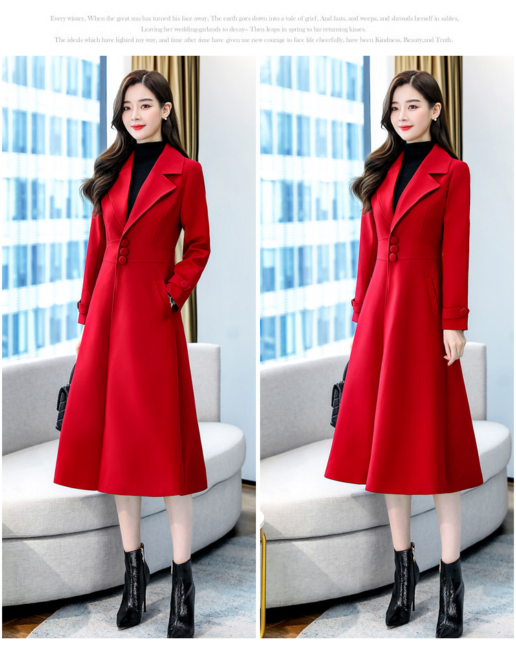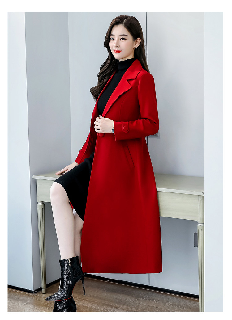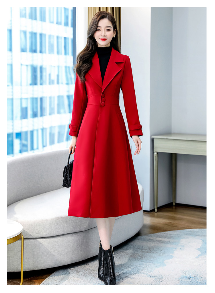 Красное шерстяное пальто, длинная весенняя осенняя куртка, средней длины, 2024 года, увеличенная толщина