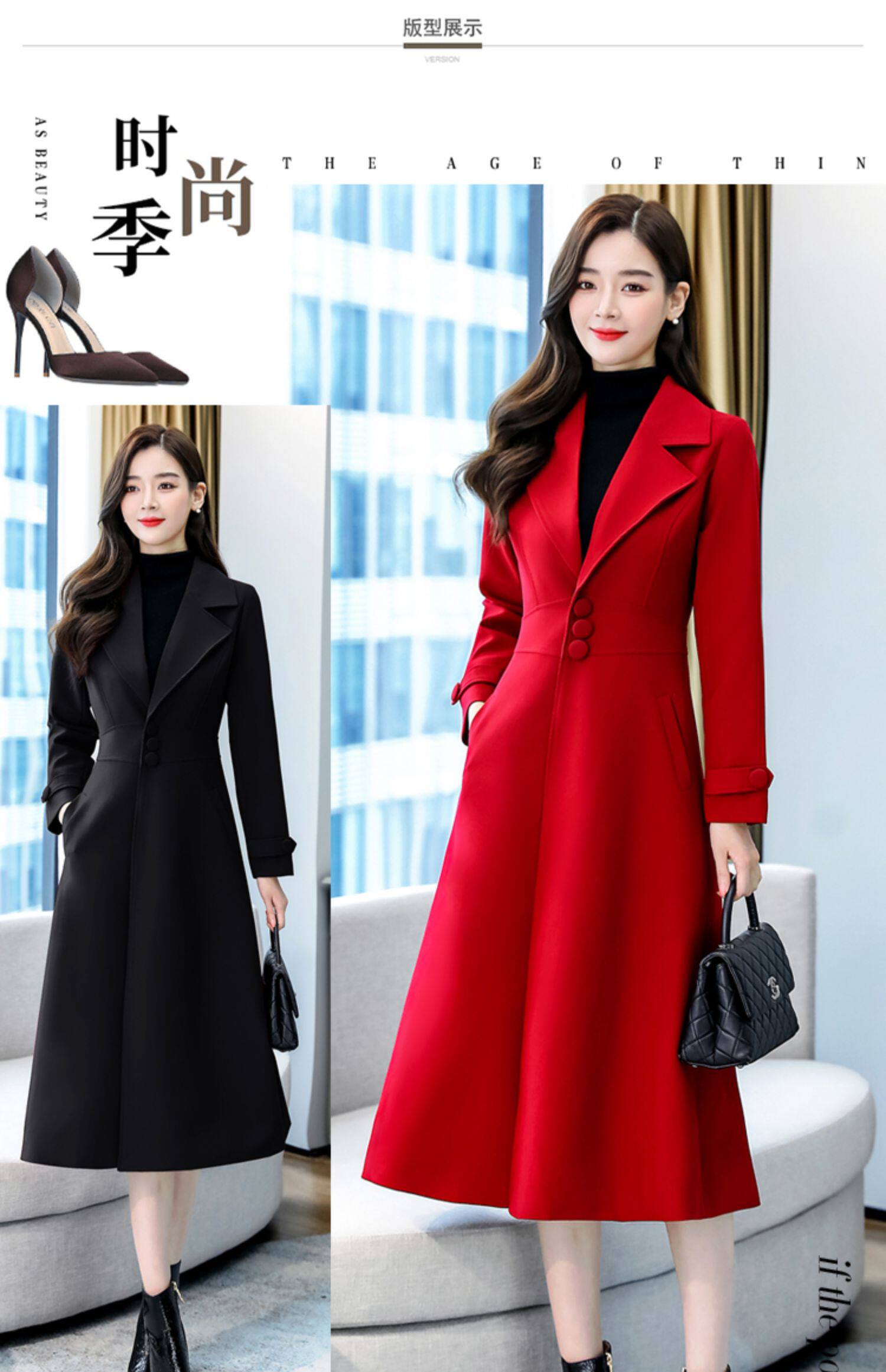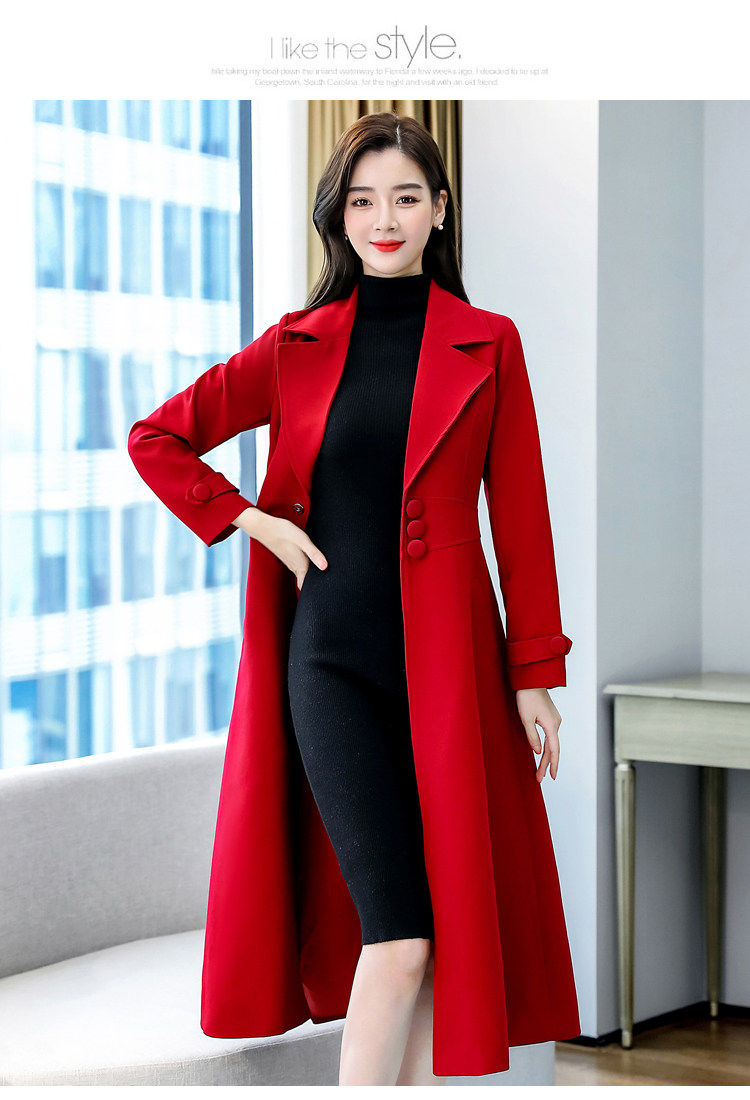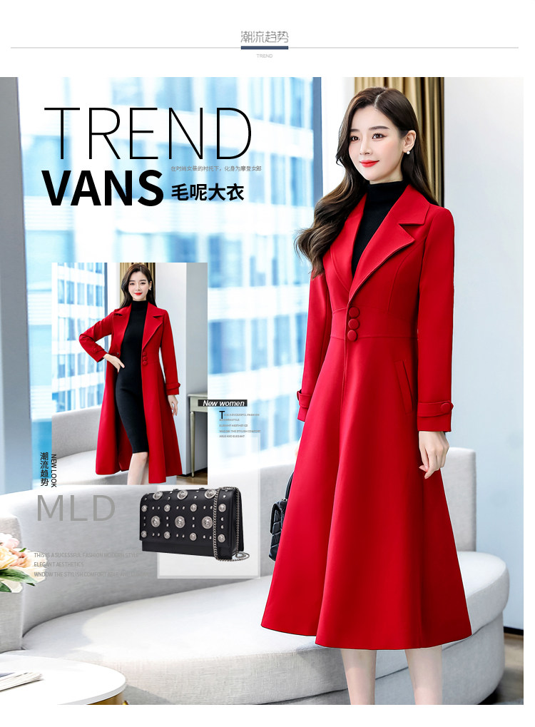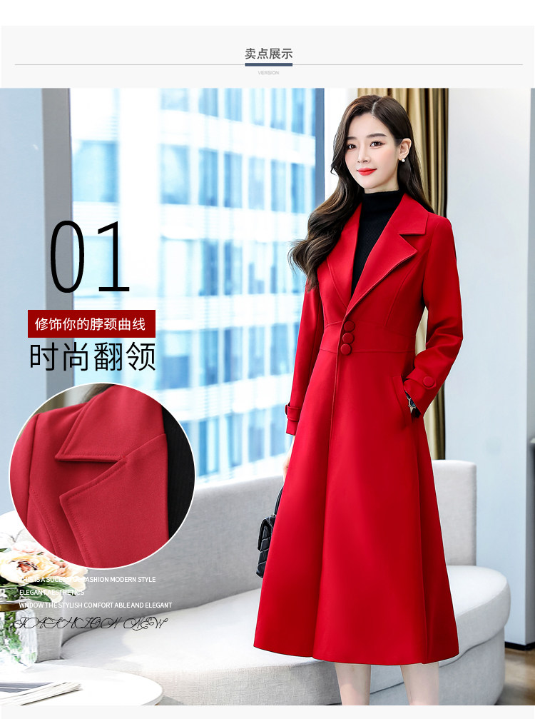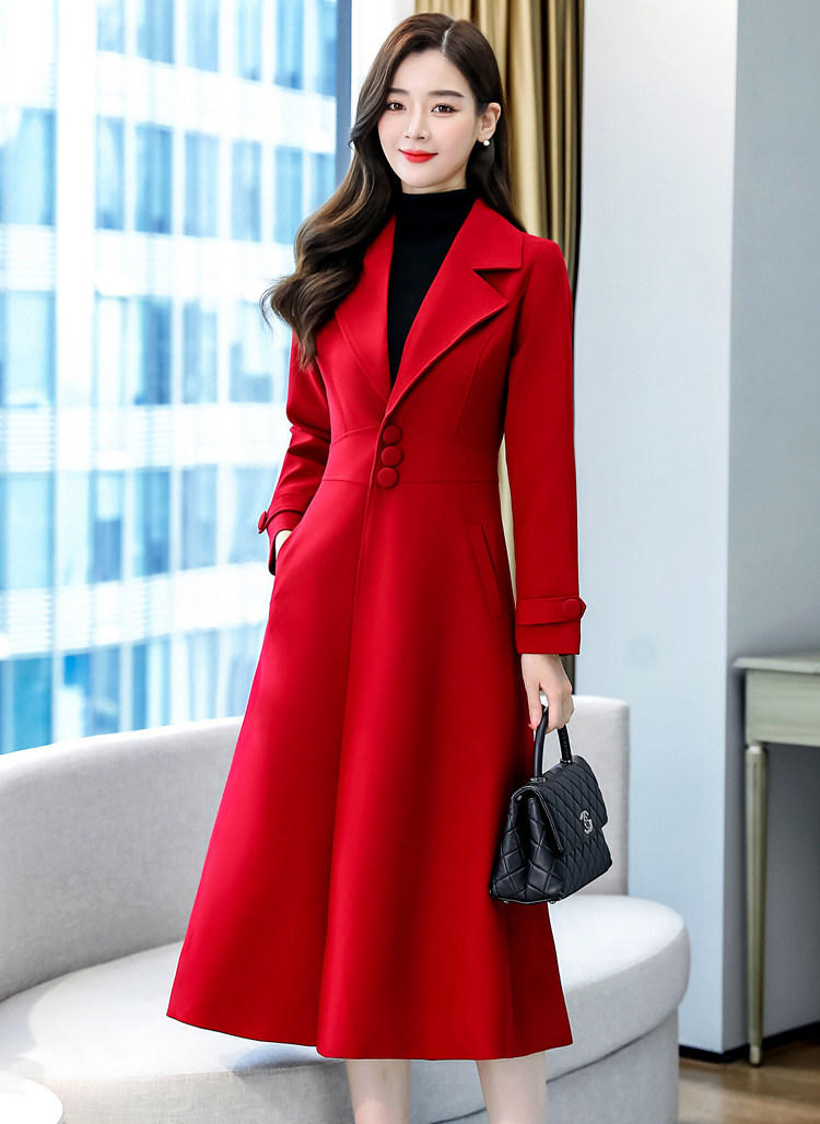 Красное шерстяное пальто, длинная весенняя осенняя куртка, средней длины, 2024 года, увеличенная толщина