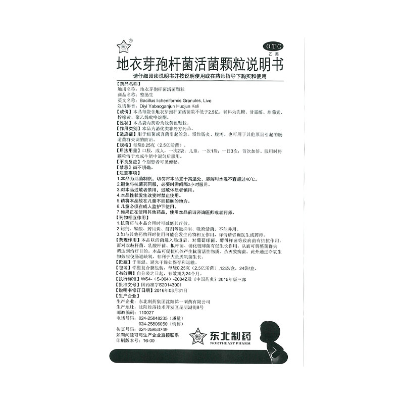 整肠生 Clatlated Bacillus Live гранулы 0,25 г*12 мешок/коробка конкурирует с диареей кальциан