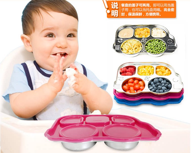 Детский автобус, обеденная тарелка, ударопрочный стульчик для кормления из нержавеющей стали, США