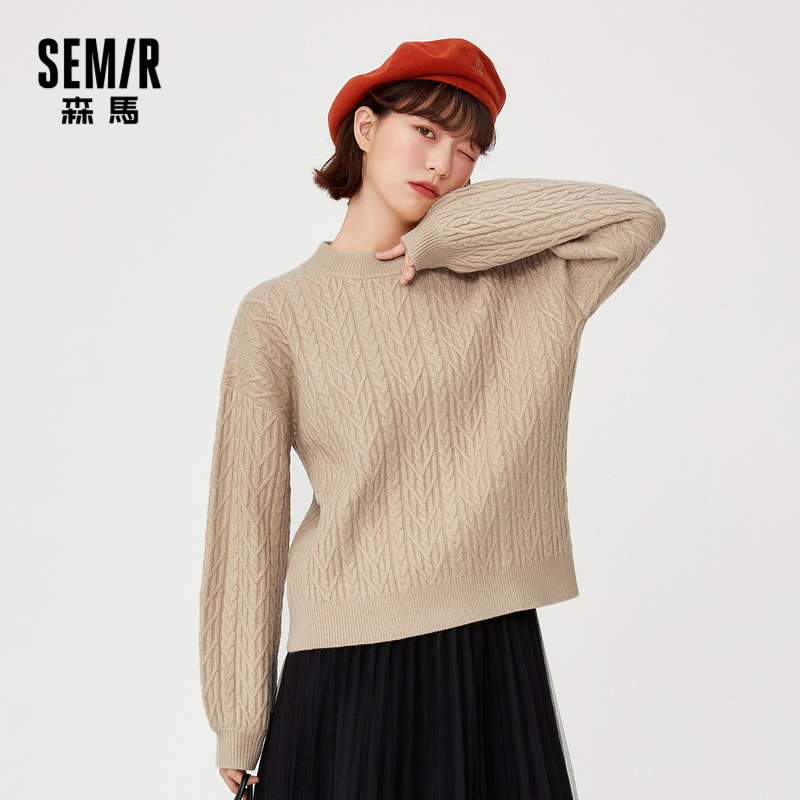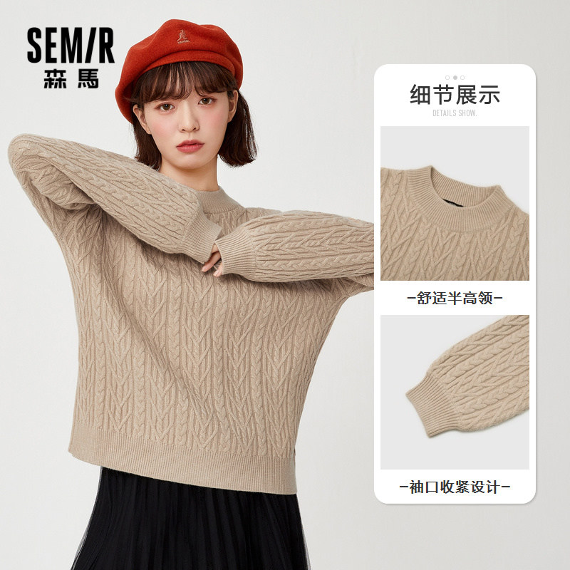 Semir, весенний однотонный трикотажный свитер, коллекция 2021, тренд сезона, высокий воротник