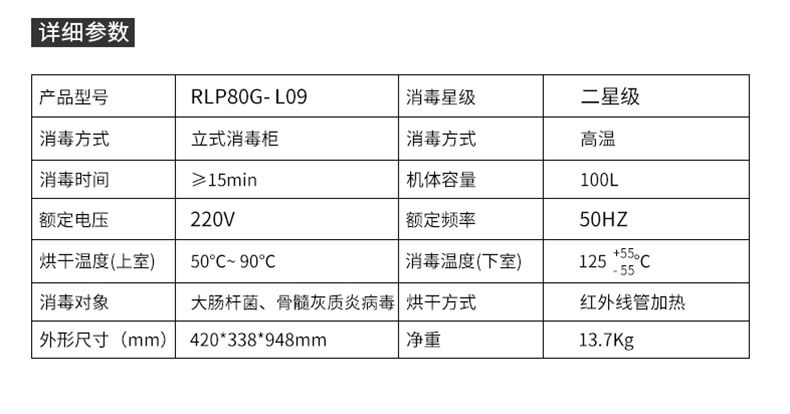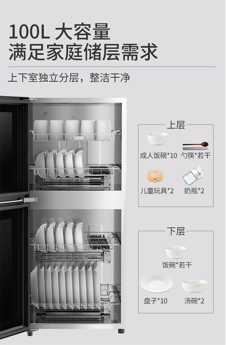 Supor L09 Дезинфекция шкафа дома Небольшой вертикальный высокий уровень двухэтаря двухзвездочного шкафа для дезинфекции Коммерческий кухонный шкаф 100 литров