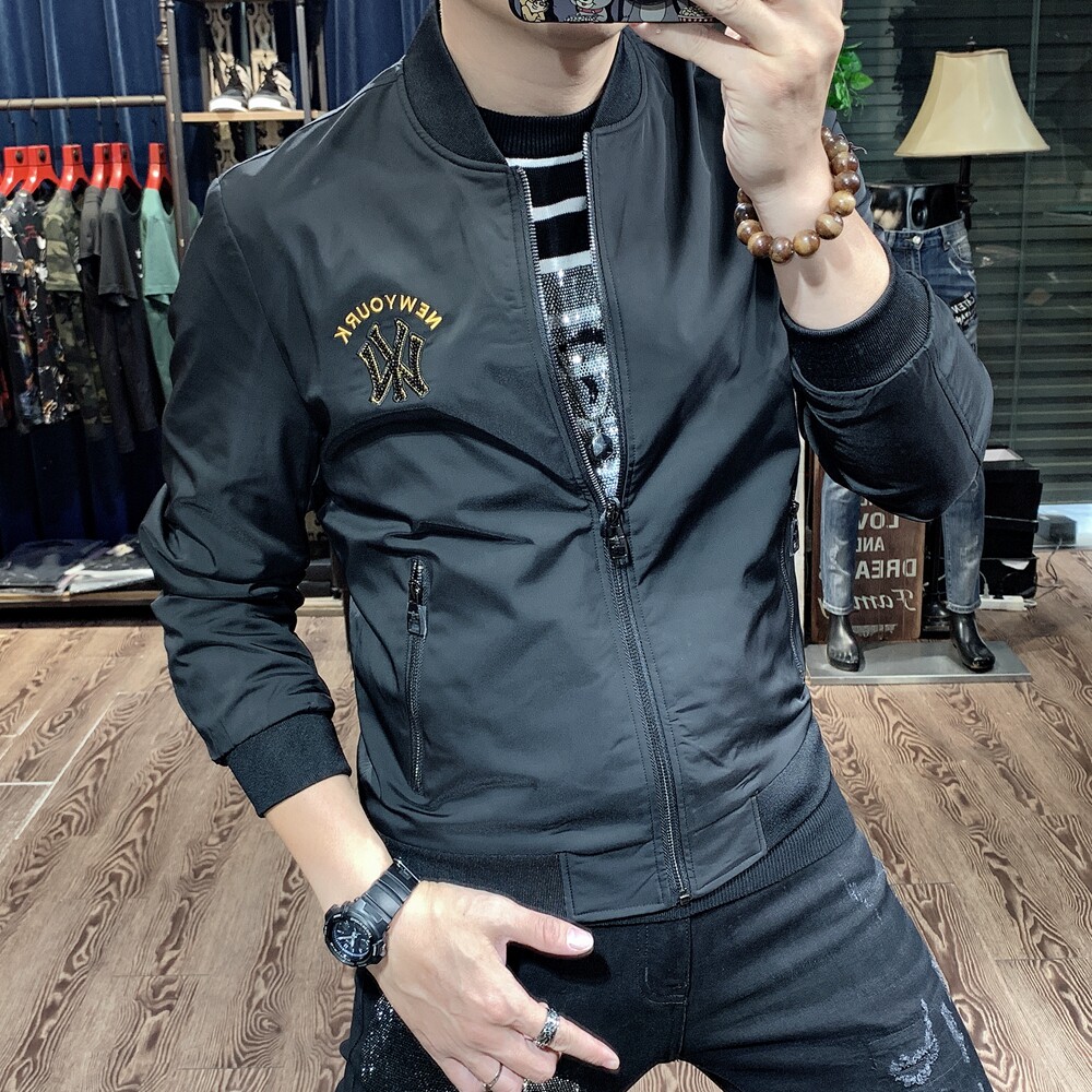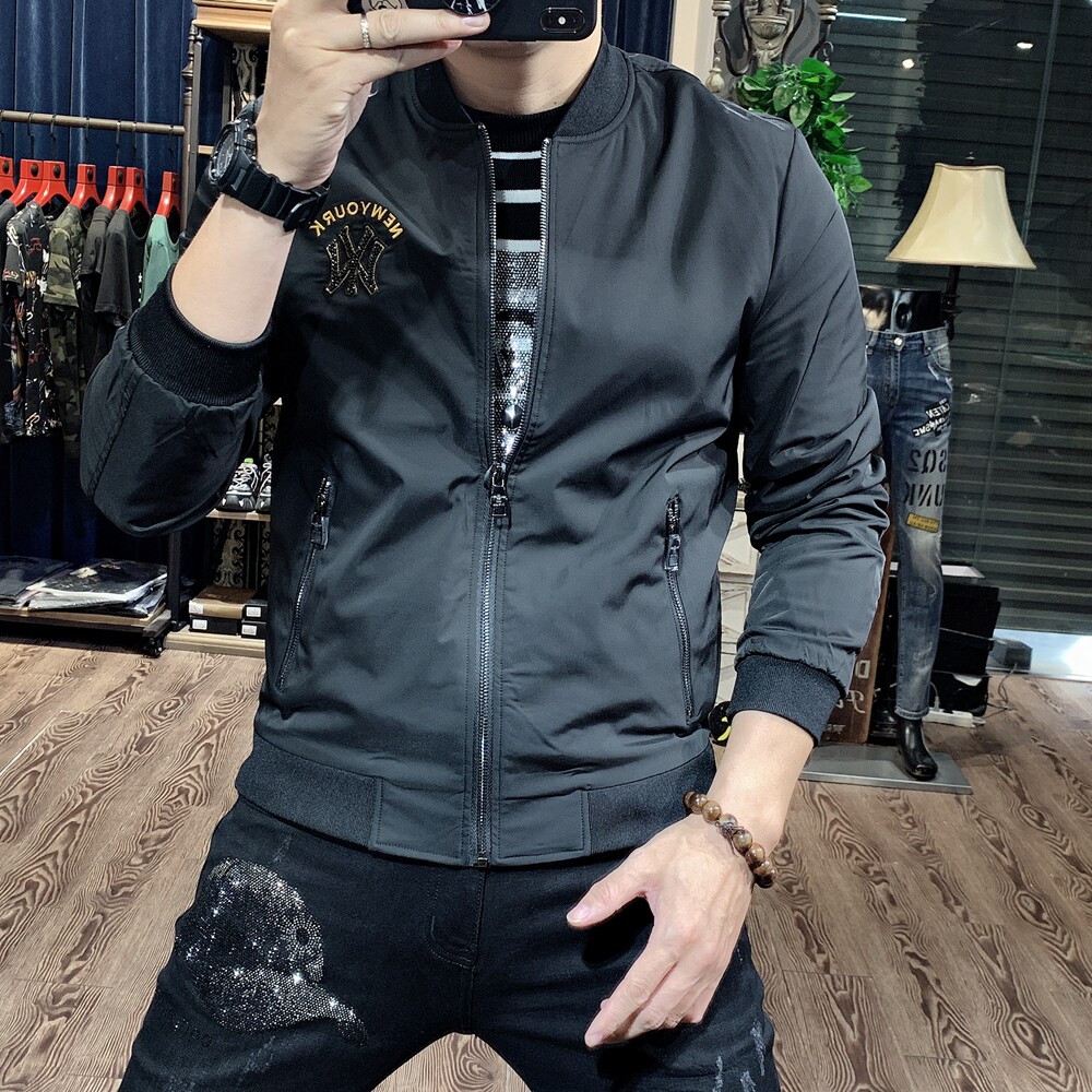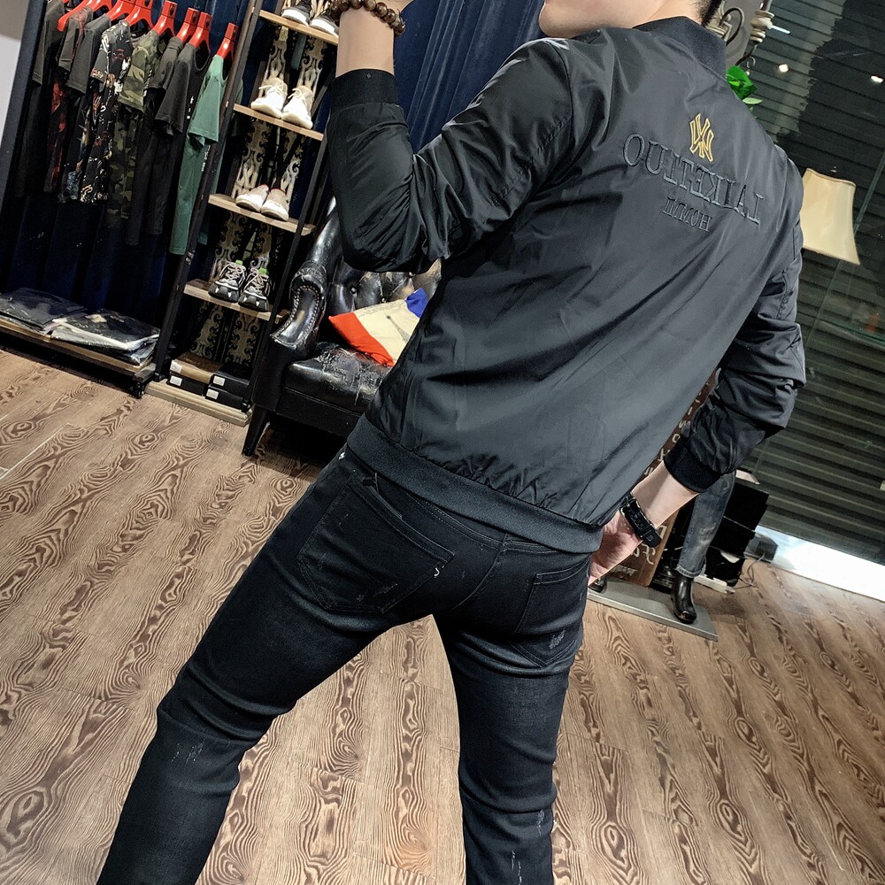 Белая мужская осенняя куртка, с вышивкой, модель весна/осень 2023 года
