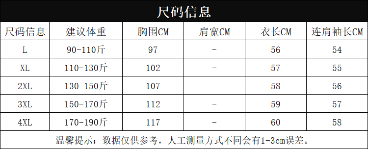 | Размер: | L (90-110 кот), XL (110-130 Catties), 2xl (130-150 Catties), 3xl (150-170 котлих), 4xl (170-190 котлих) |