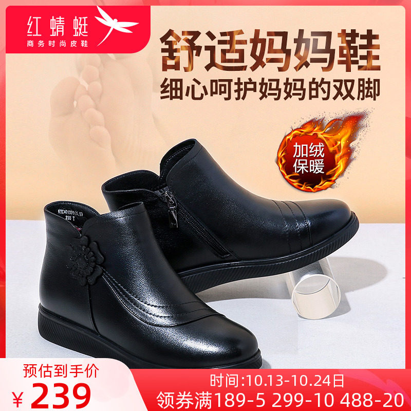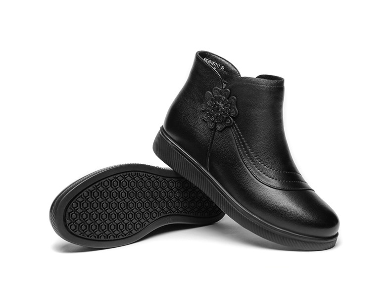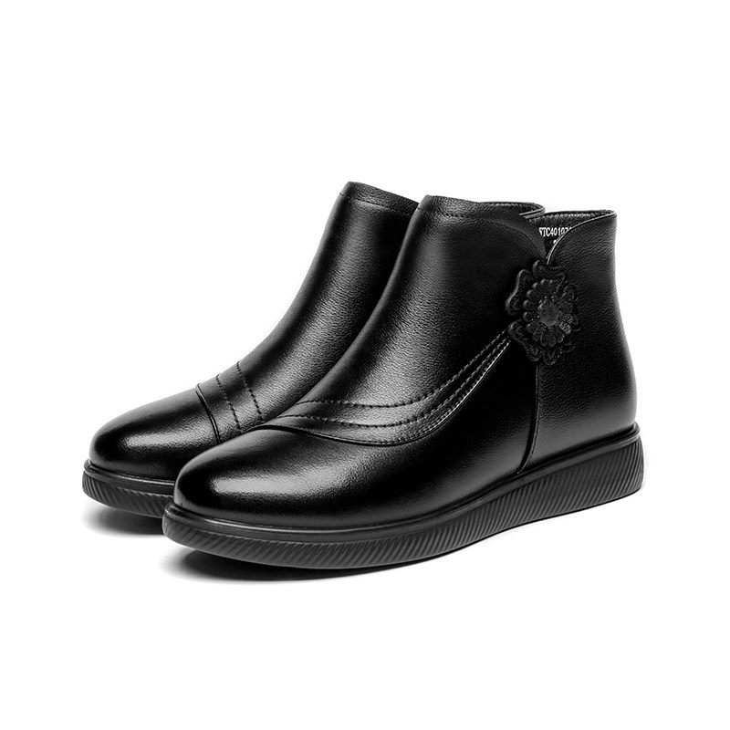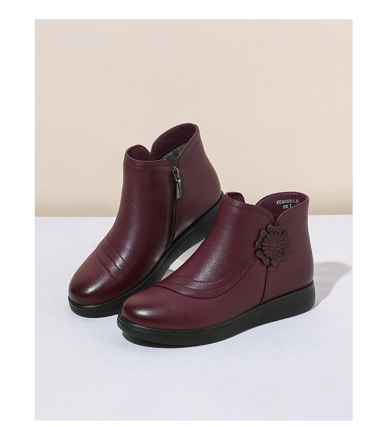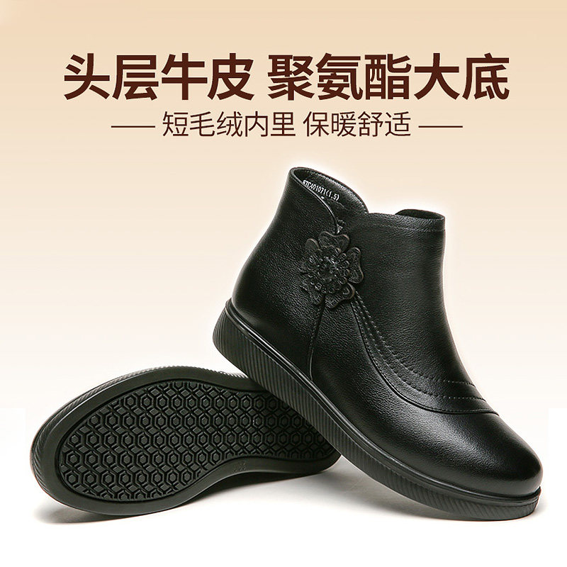 Демисезонные нескользящие флисовые удерживающие тепло короткие сапоги для матери, из натуральной кожи, для среднего возраста