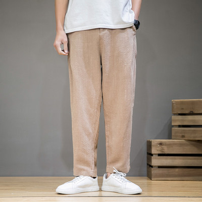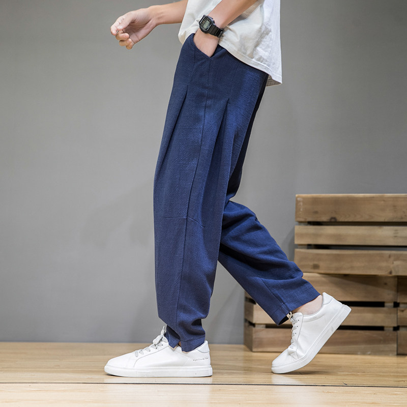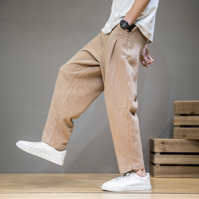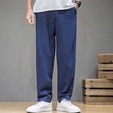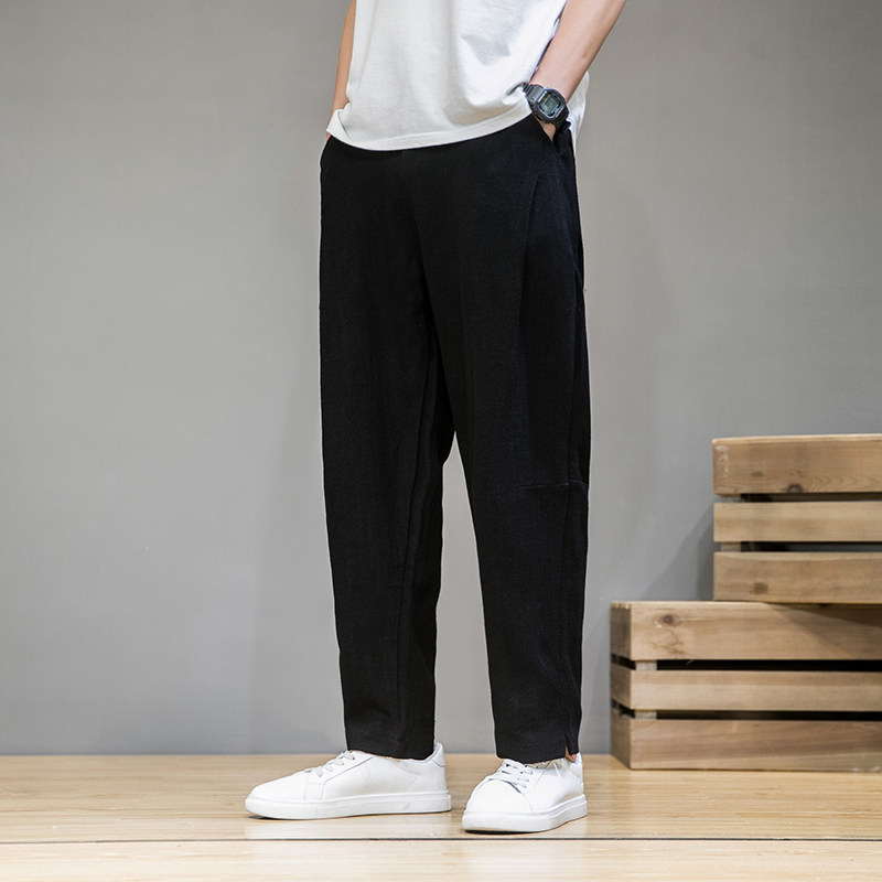 Демисезонные штаны, китайский стиль, свободный прямой крой, большой размер, из хлопка и льна
