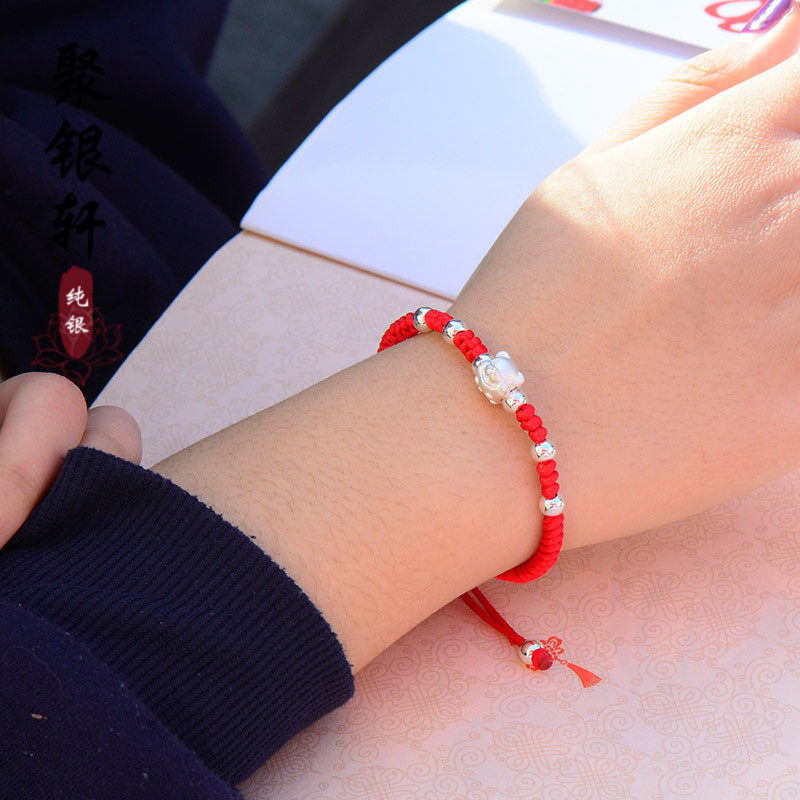 Плетеный оберег на день рождения ручной работы, мужской браслет из красной нити, серебро 999 пробы, для влюбленных, подарок на день рождения
