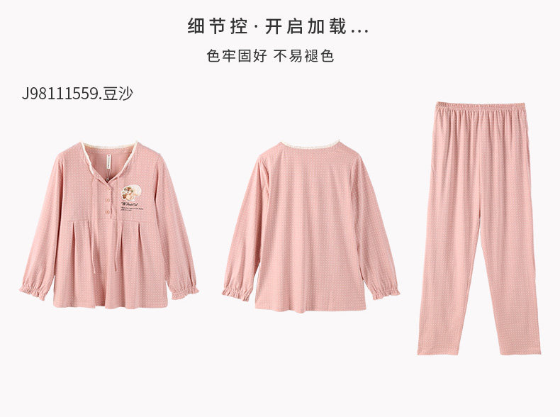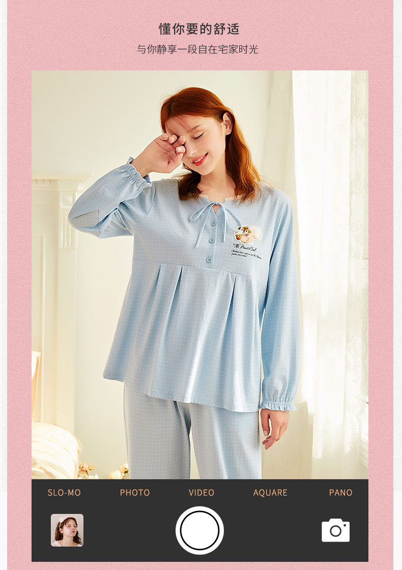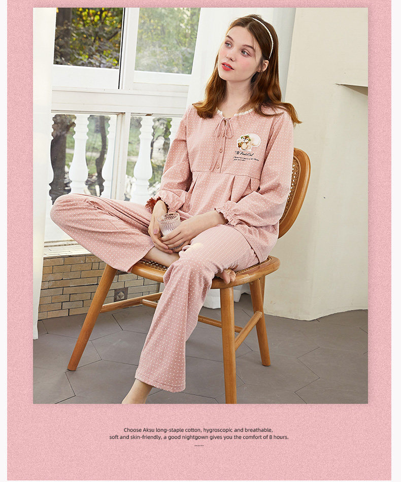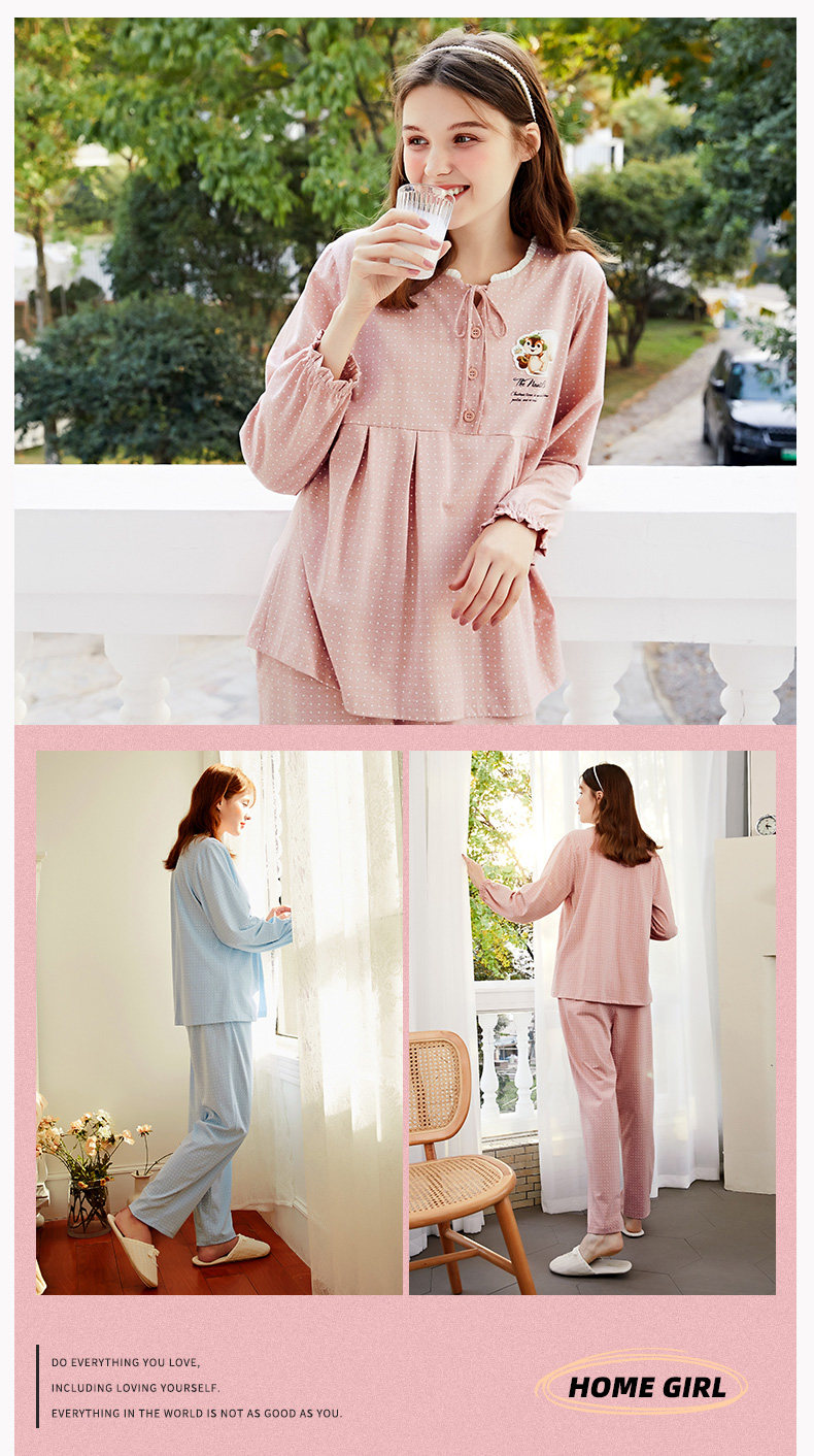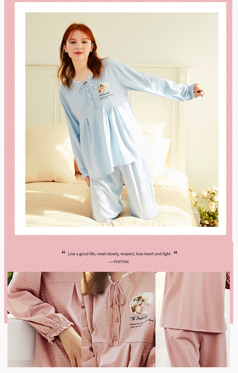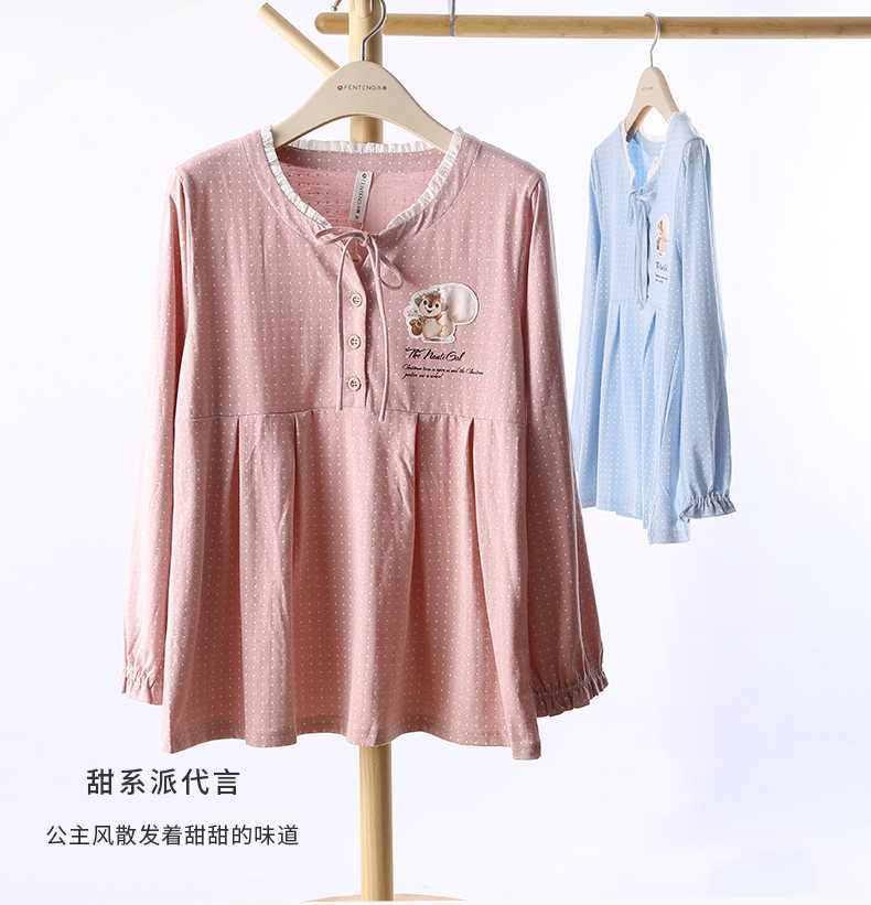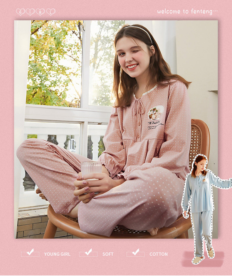 芬腾 Осенняя пижама, лонгслив, милые штаны, комплект, в корейском стиле, свободный крой