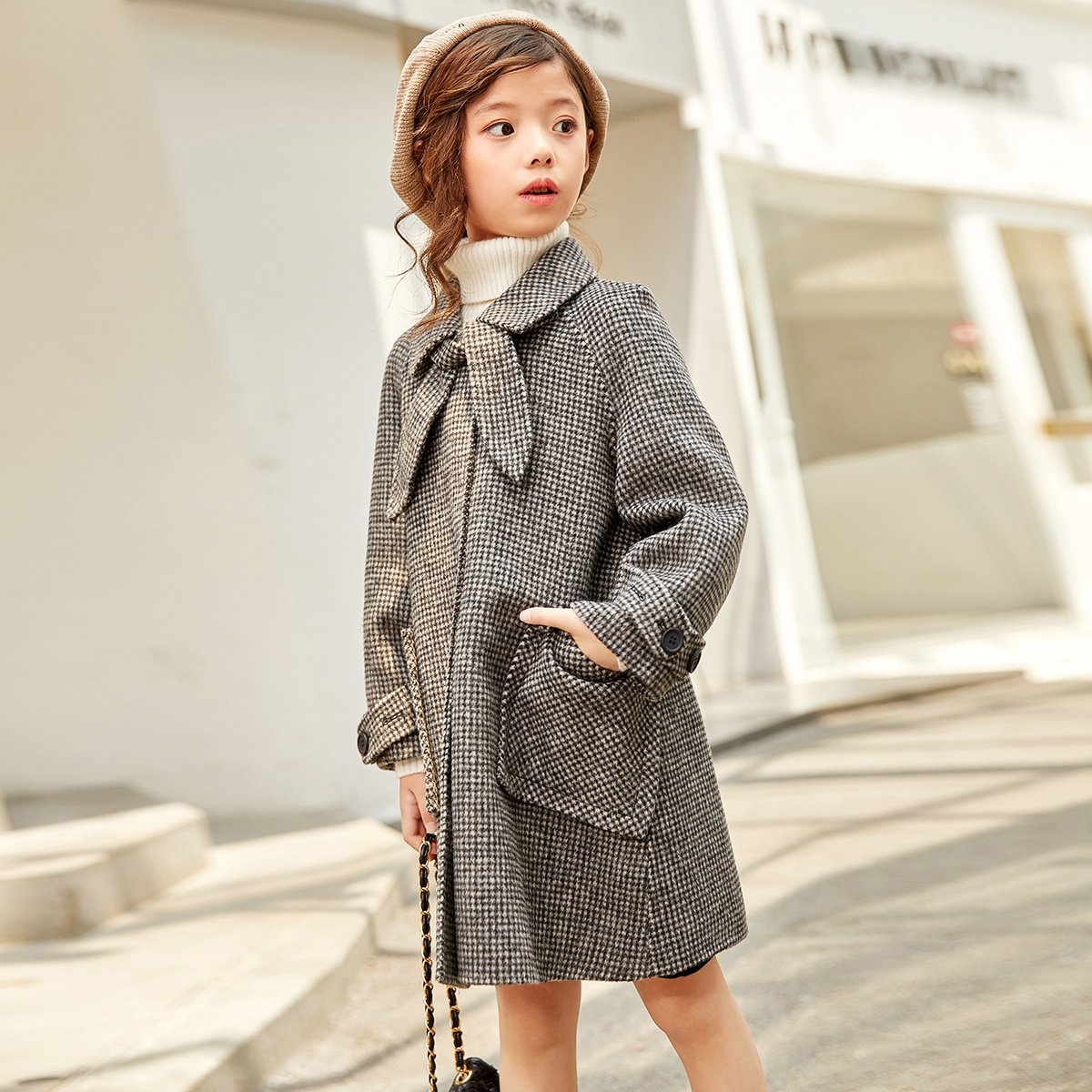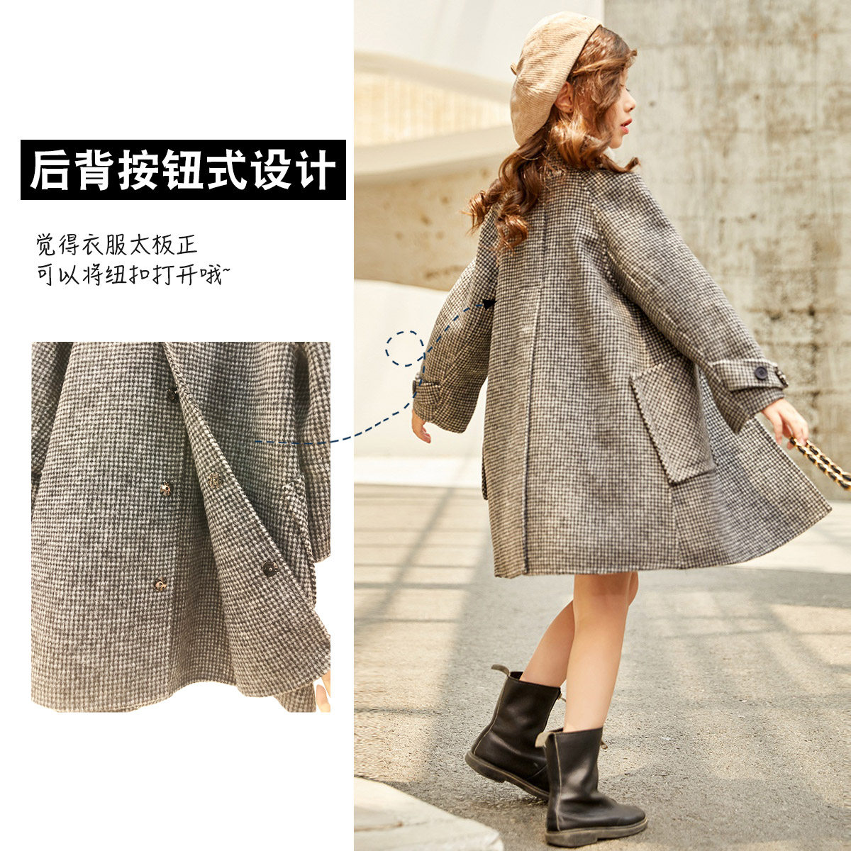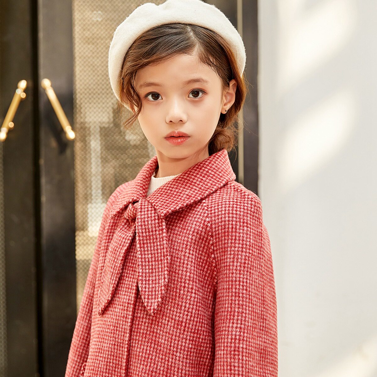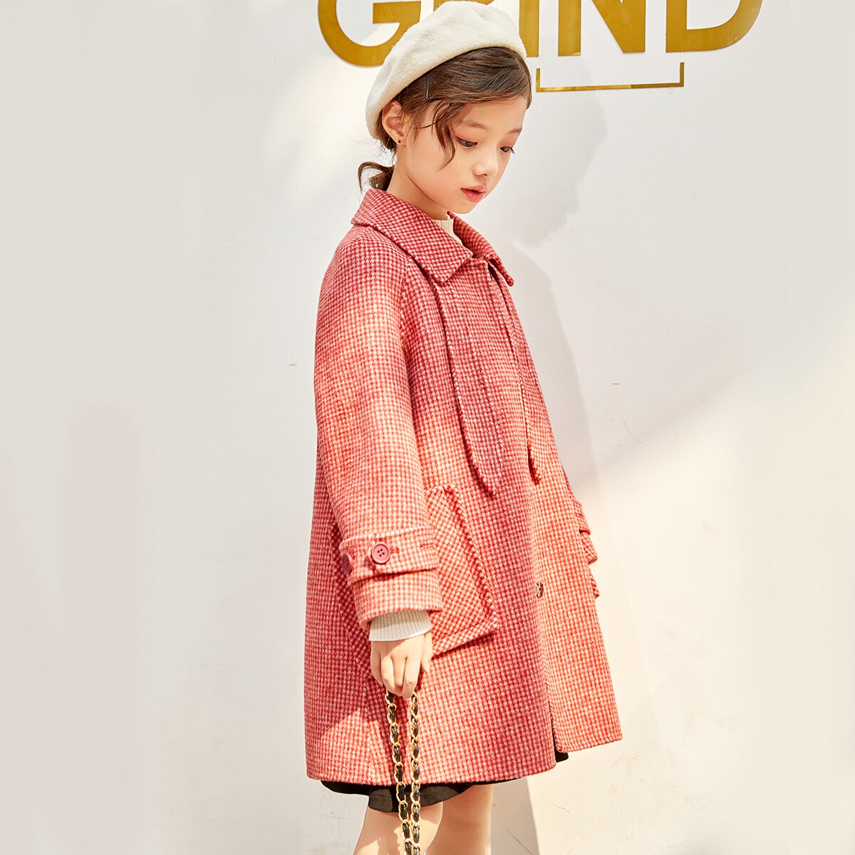 Двусторонное шерстяное бархатное красное детское шерстяное пальто, в западном стиле