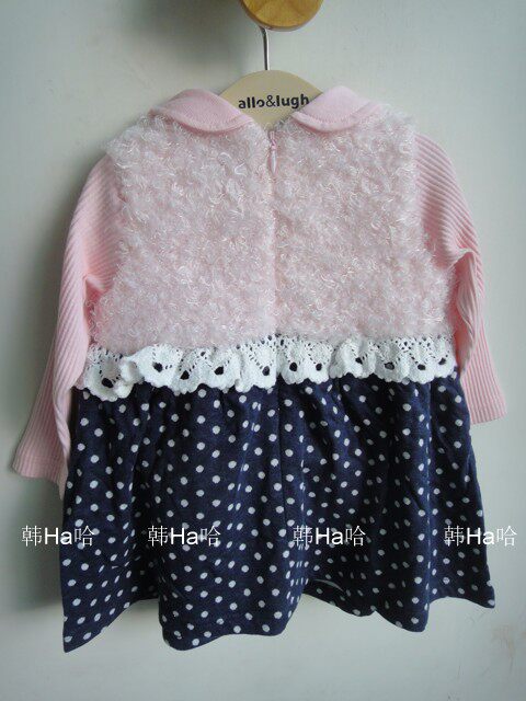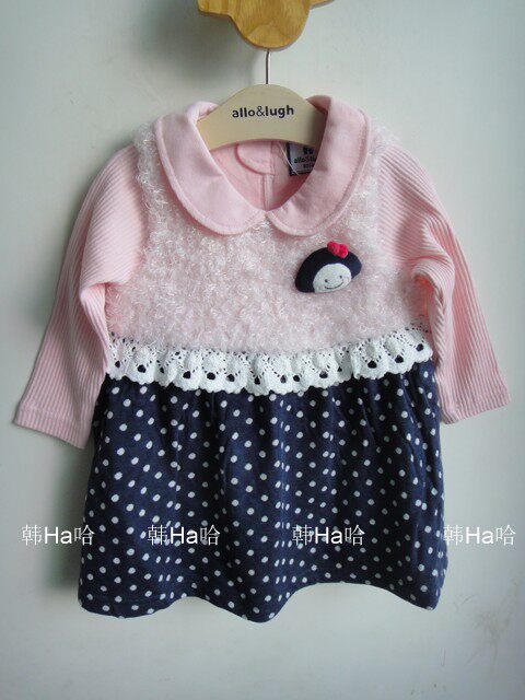 Юбка для маленьких детей в корейском стиле, розовая плюшевая юбка из воздушного хлопка с длинными рукавами и точками, весенне-осеннее платье для девочек