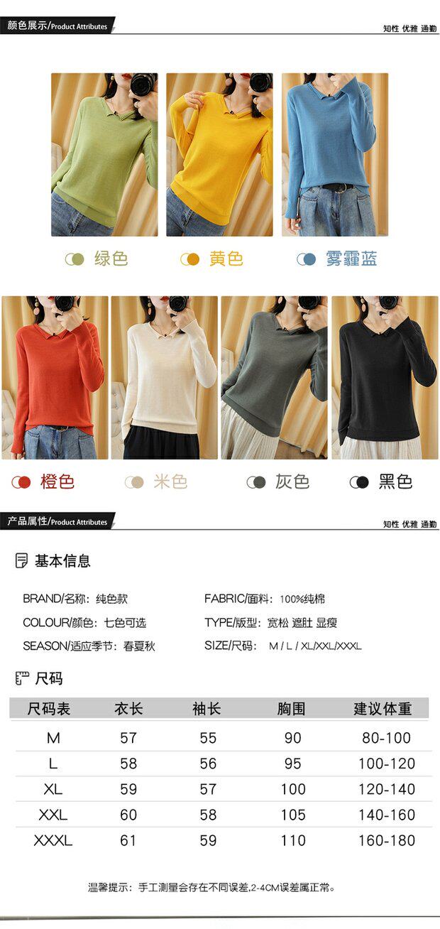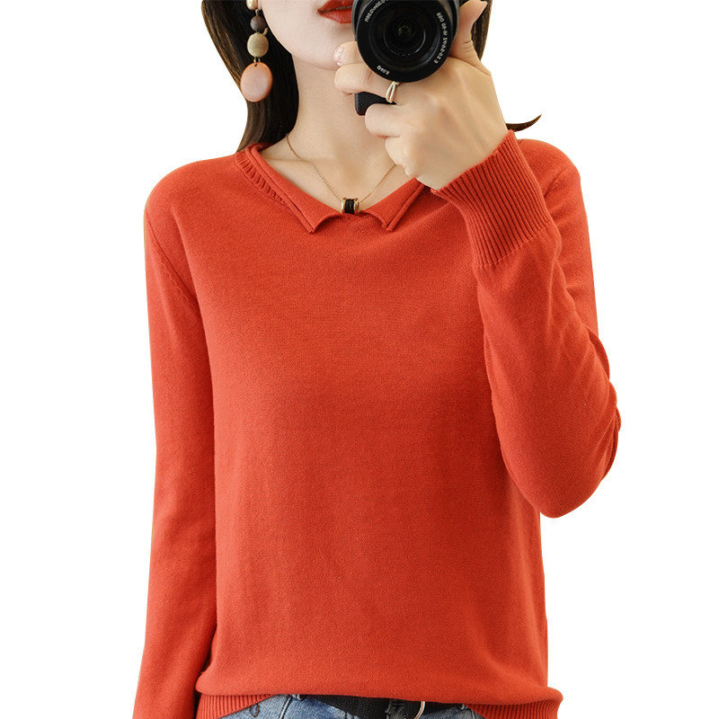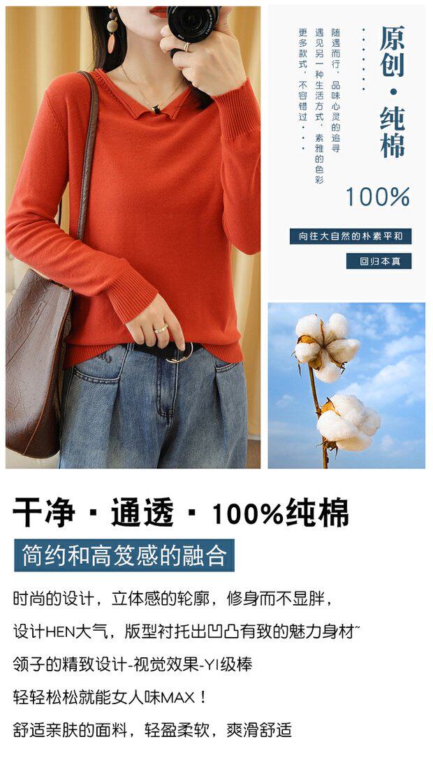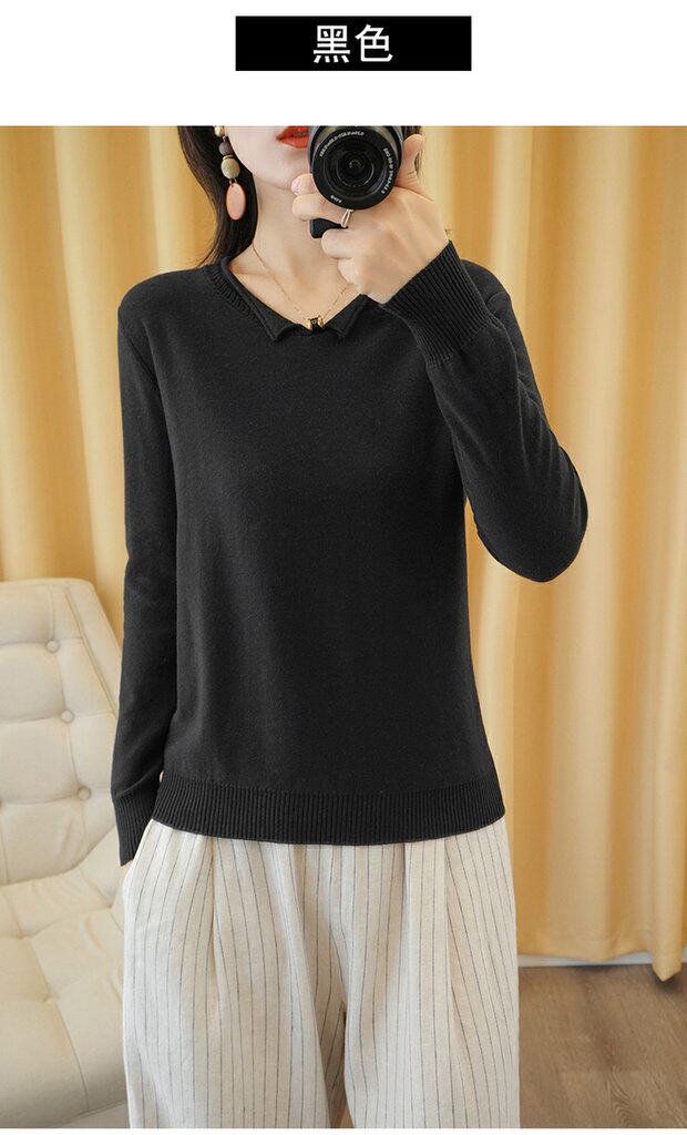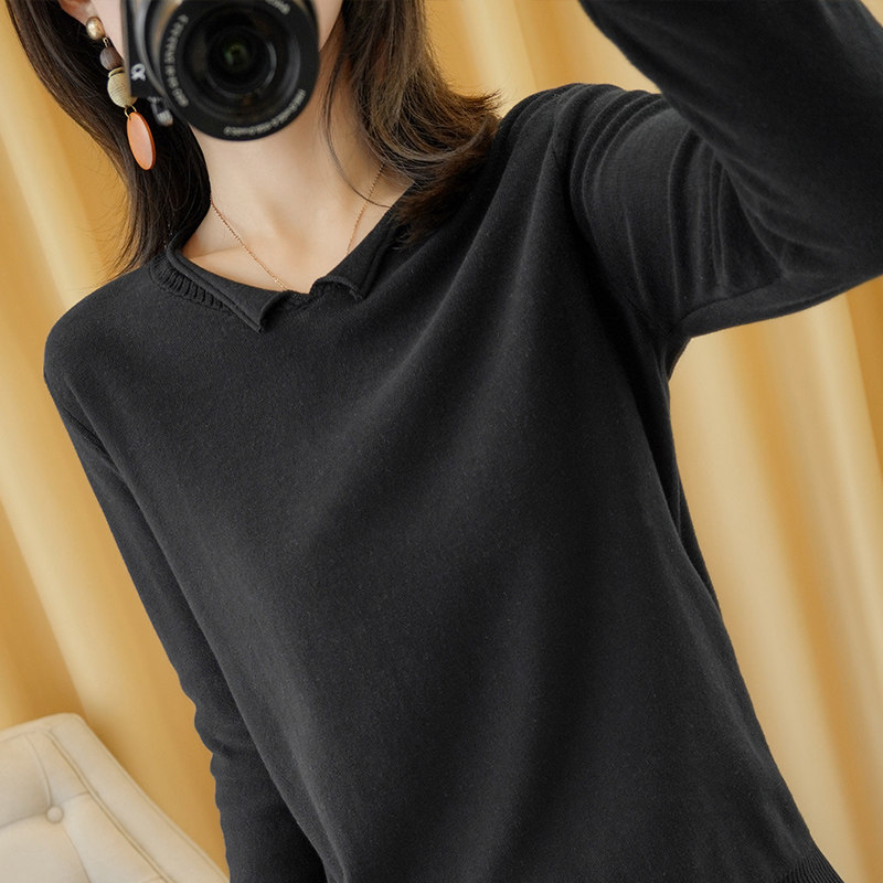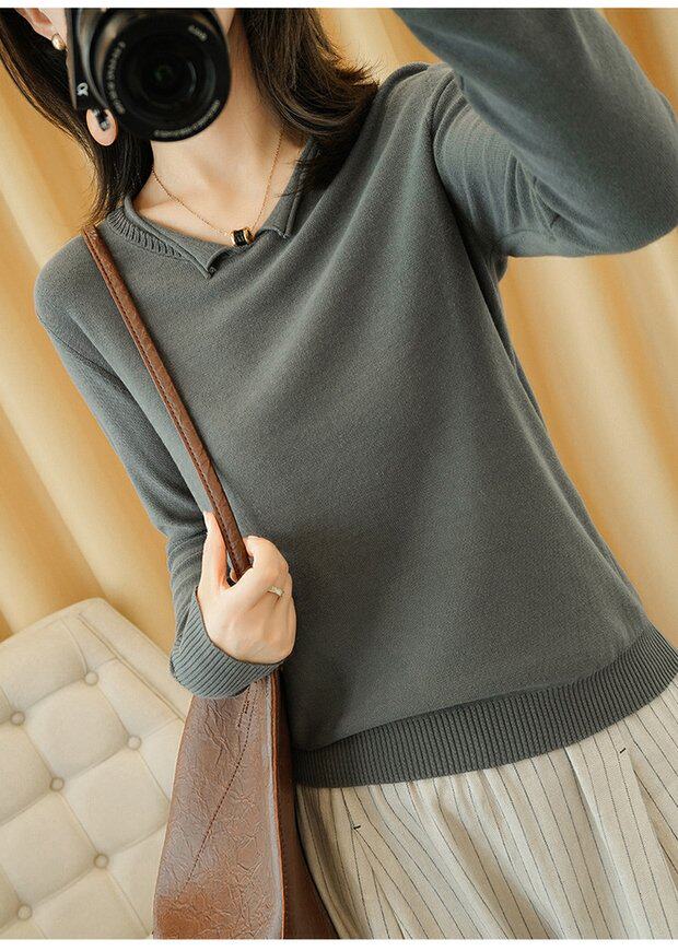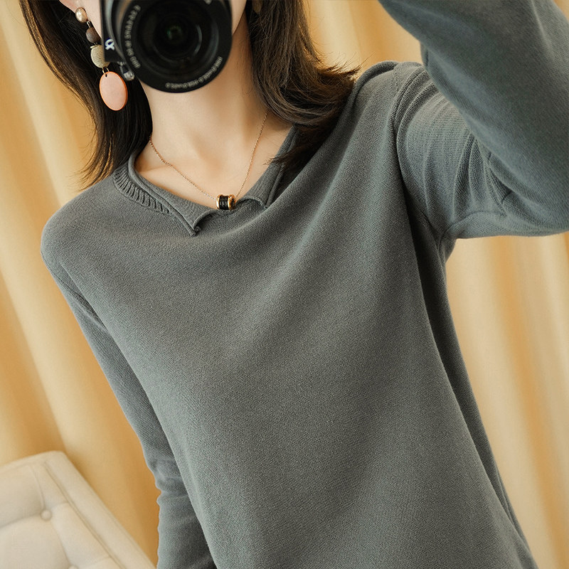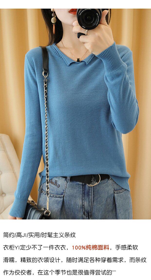 Осенний хлопковый трикотажный свитер, базовый лонгслив, короткое термобелье, V-образный вырез, городской стиль