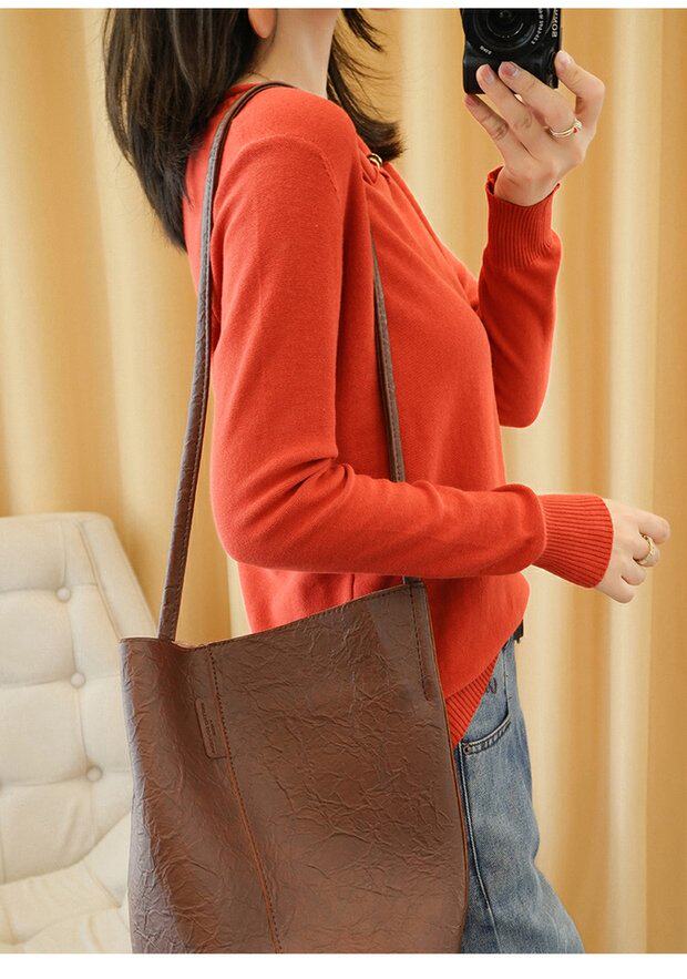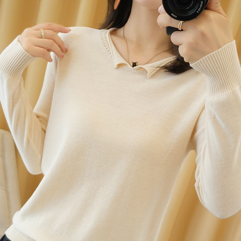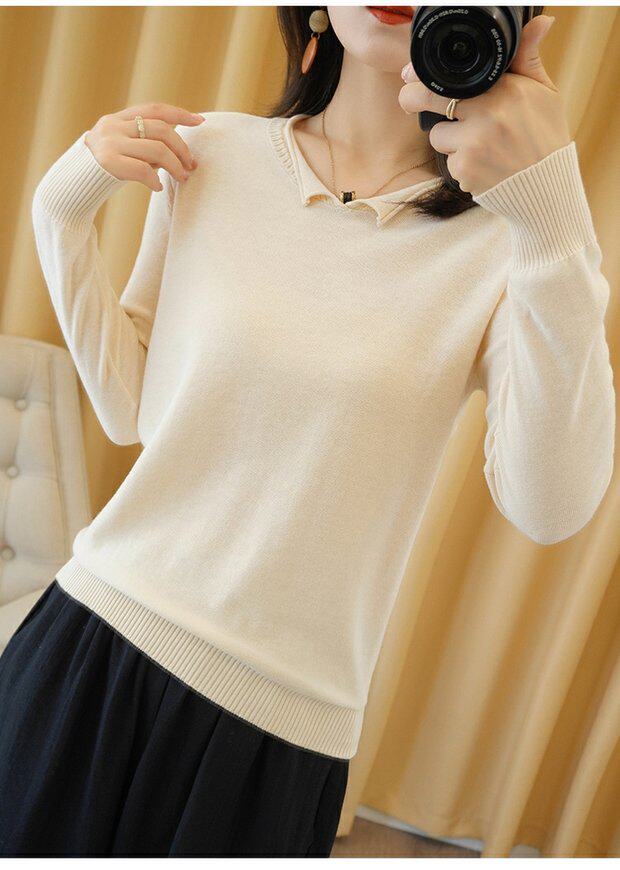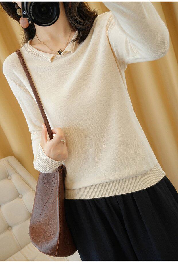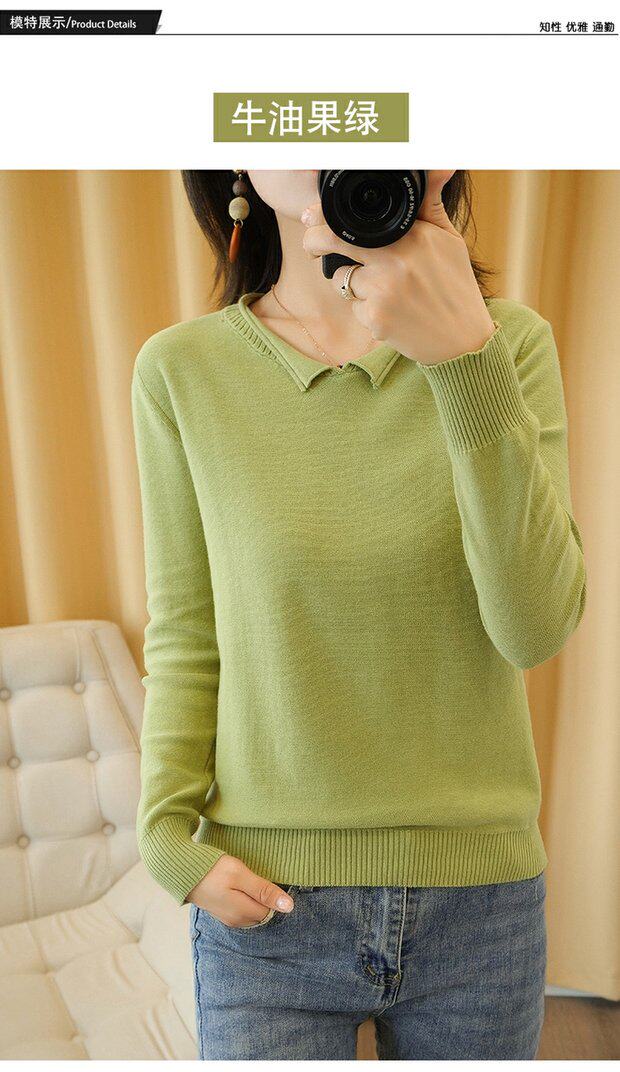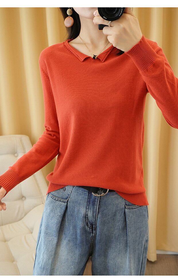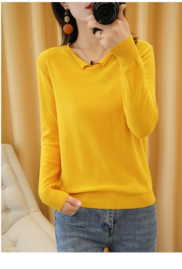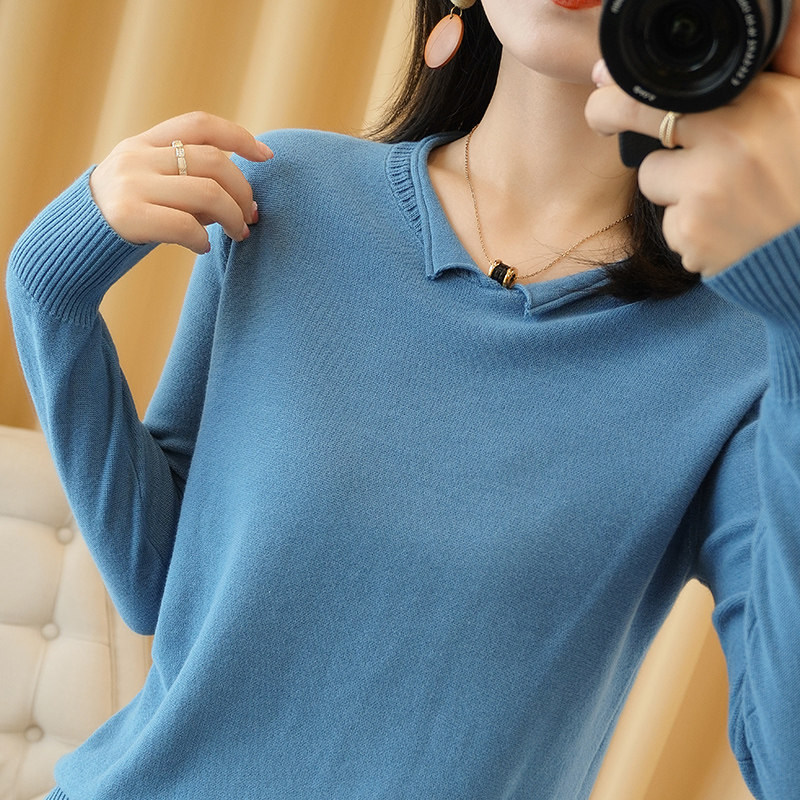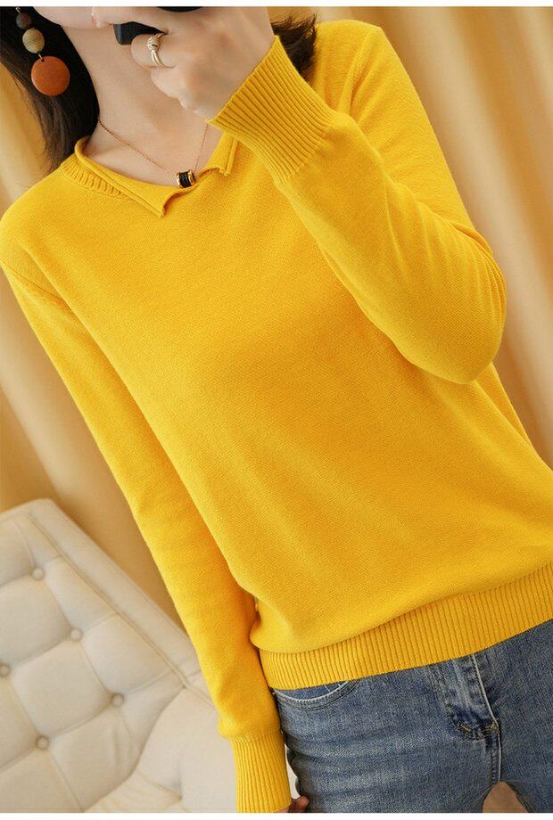 Осенний хлопковый трикотажный свитер, базовый лонгслив, короткое термобелье, V-образный вырез, городской стиль