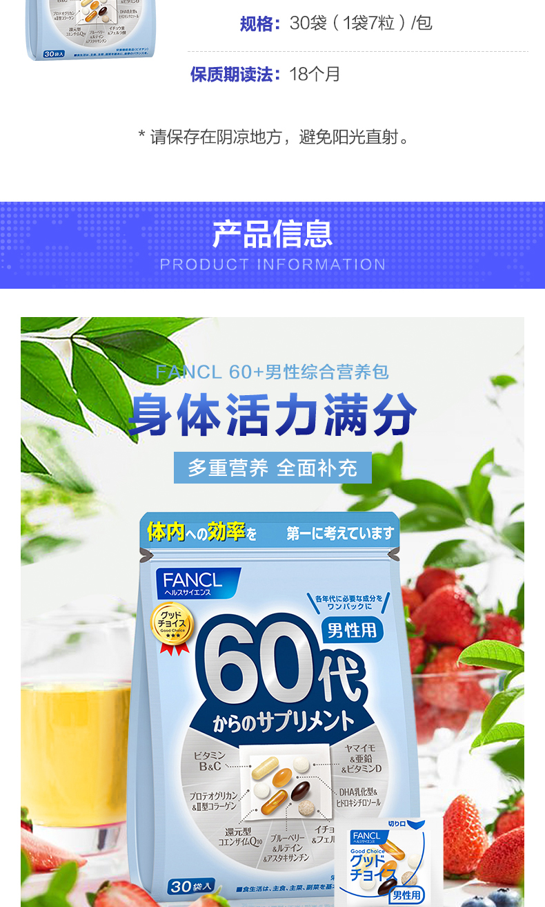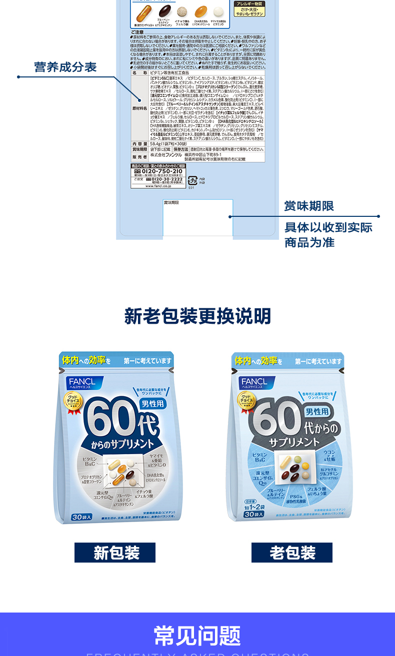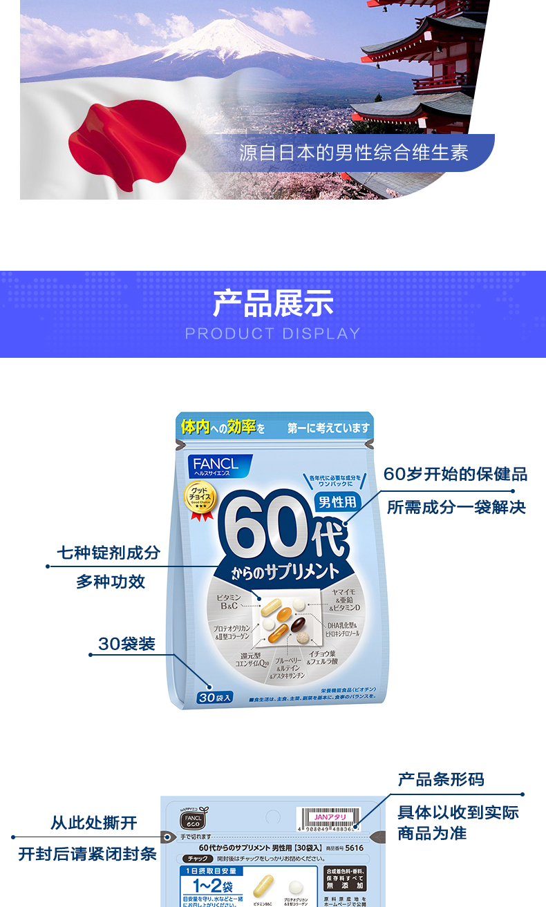[2 части] Fancl Male 60 Комплексный пакет питания Соединение множество видов витаминов -гингерона группы В.