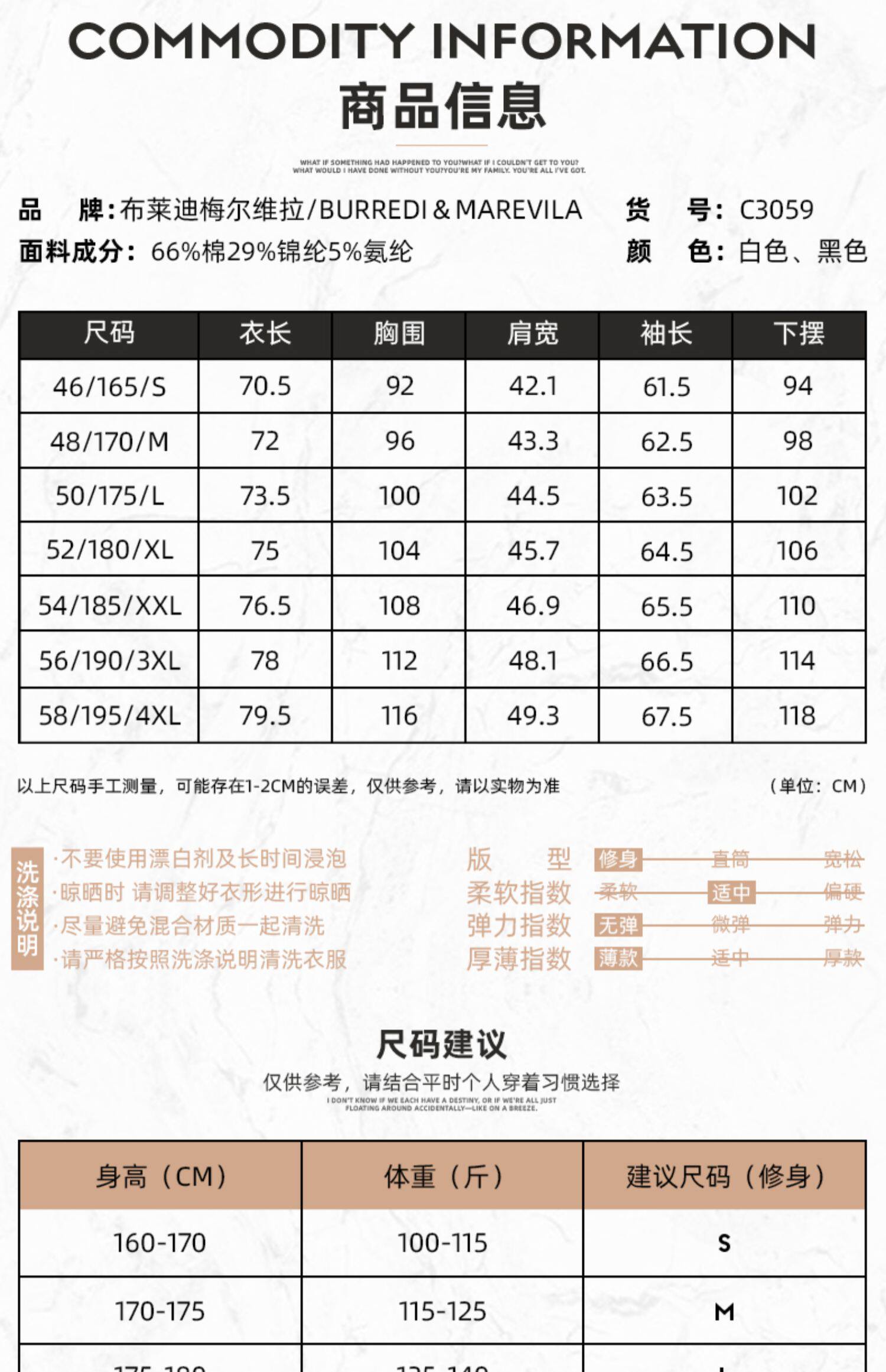 | Размер: | 46/S/165, 48/M/170, 50/L/175, 52/XL/180, 54/XXL/185, 56/XXXL/190, 58/XXXXL/195, Пожалуйста, проконсультируйтесь с обслуживанием клиентов для точного кода |