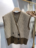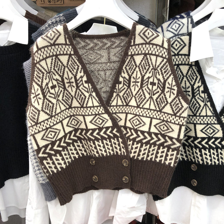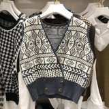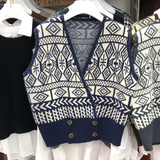 Трикотажный жилет, свитер, осенняя ретро майка топ, V-образный вырез, в корейском стиле