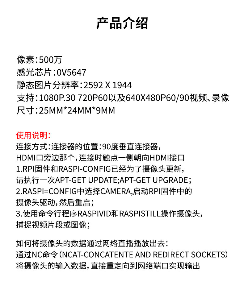 OV5647 Модуль камеры 5 миллионов пикселей шириной 65 -градусный модуль, подходящий для Raspberry Pi Raspberry Pi